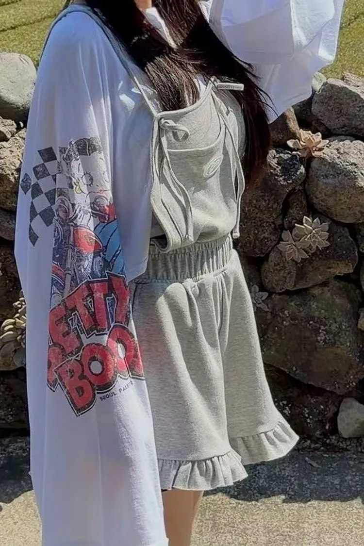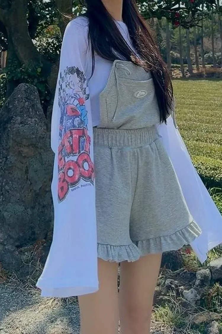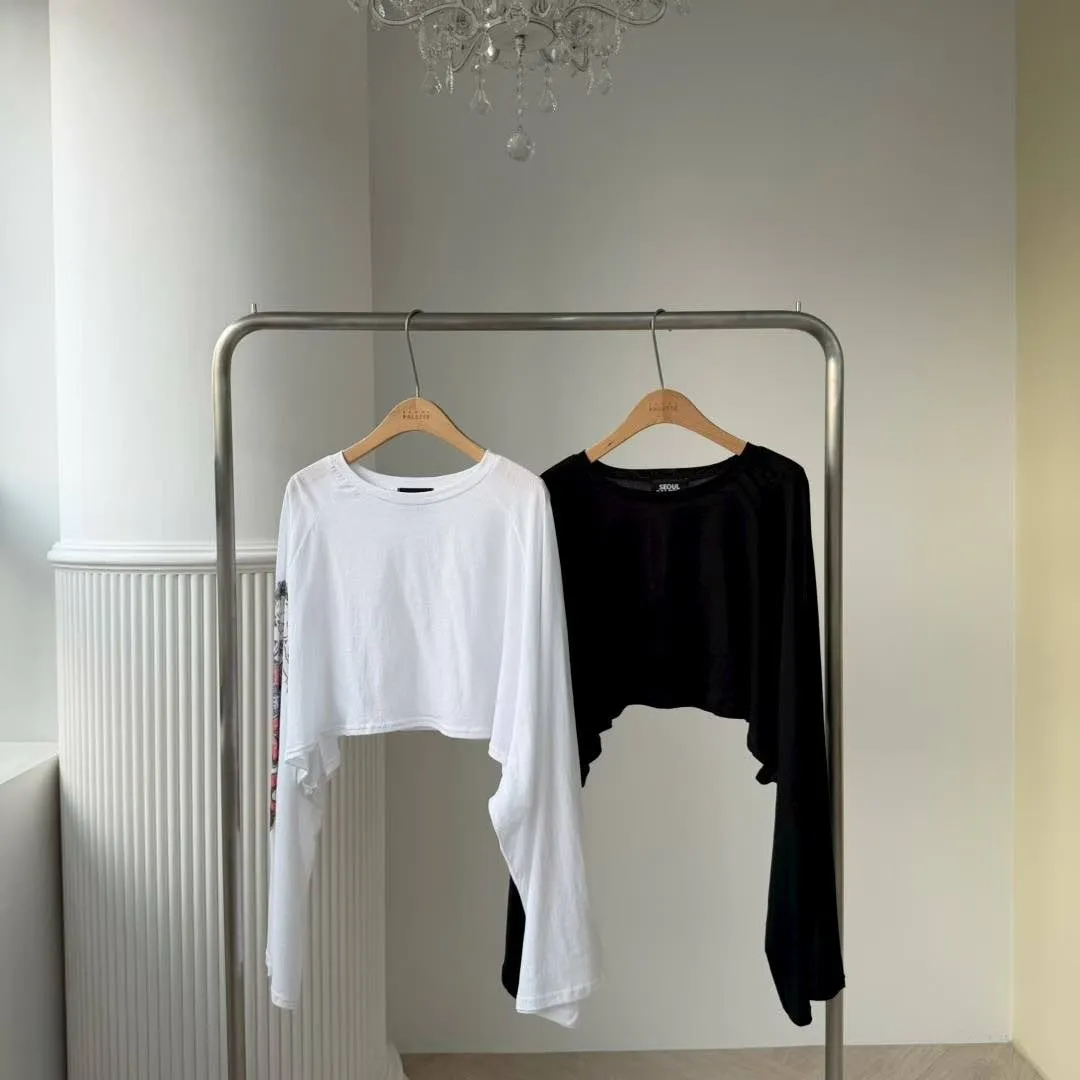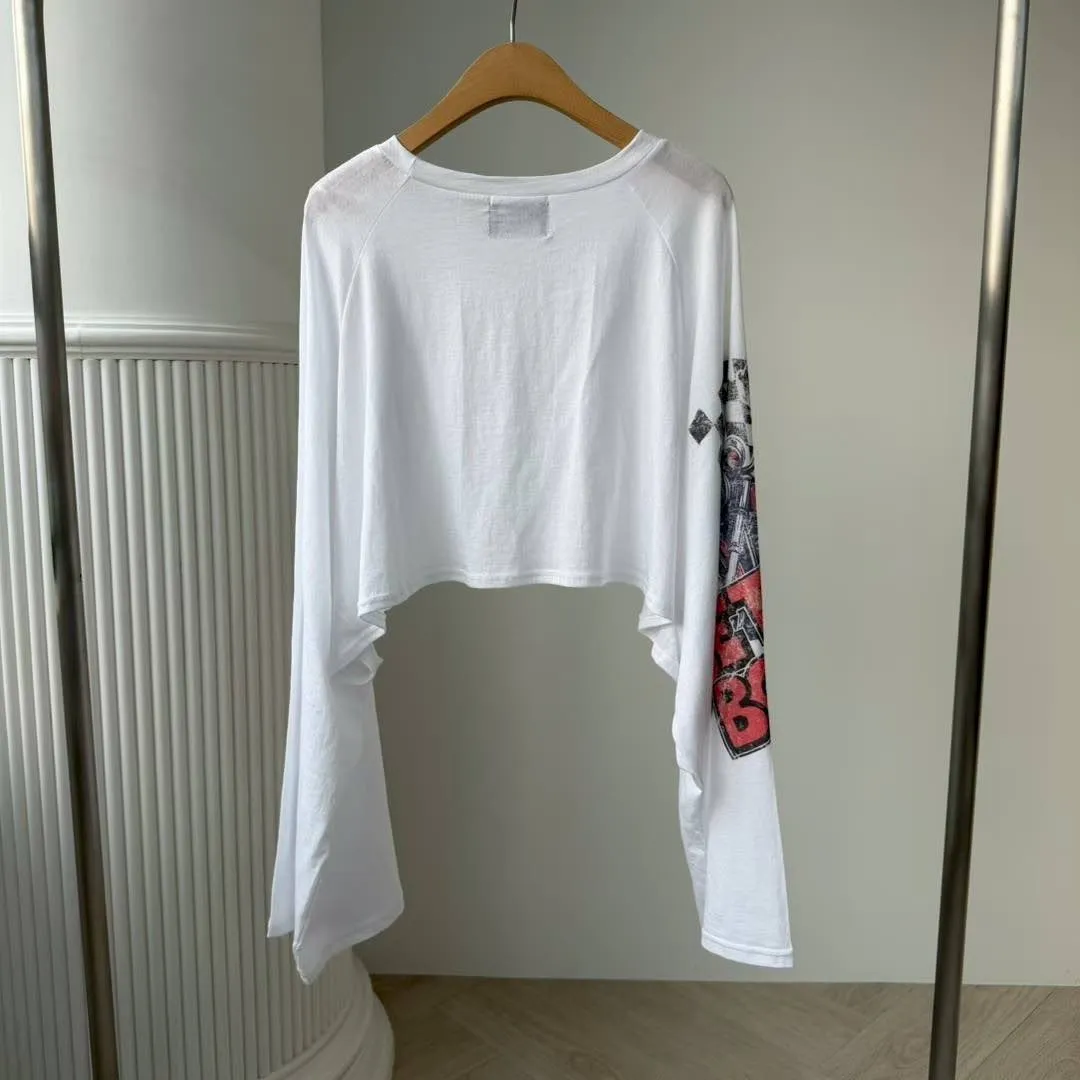 這款短版 T 真的太有態度了! 袖口的大面積印花,巧妙結合了美式機車與經典玫瑰圖騰 復古中帶點小叛逆,完全是 #Coquette 少女的必備單品。