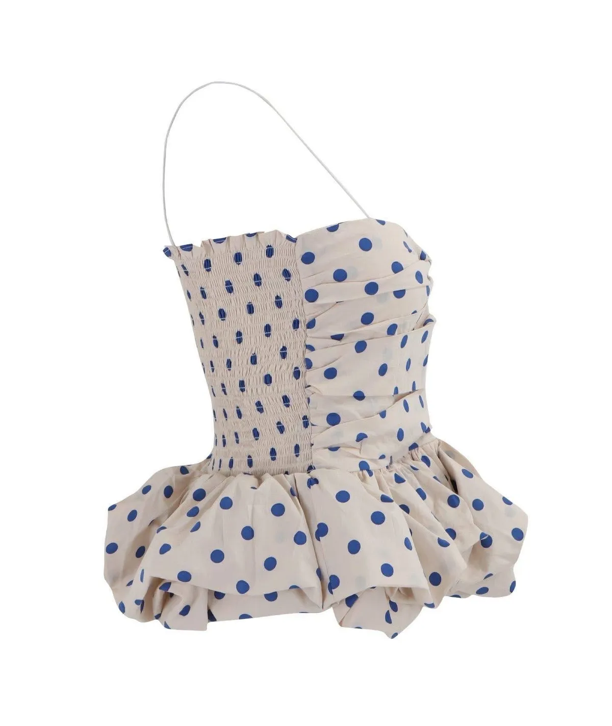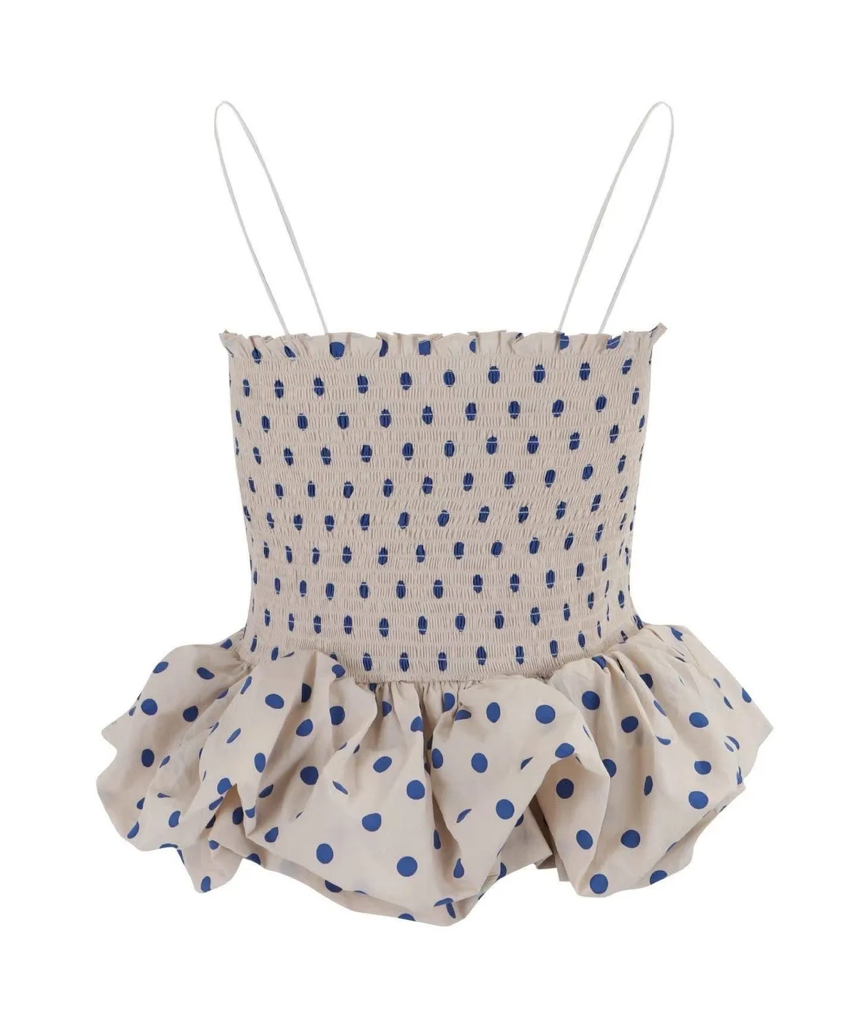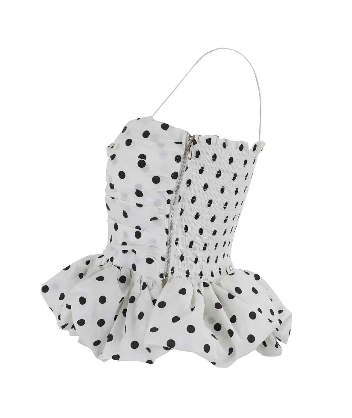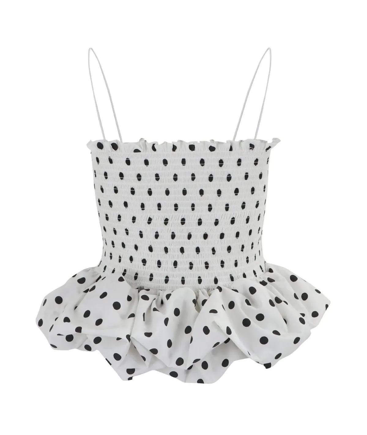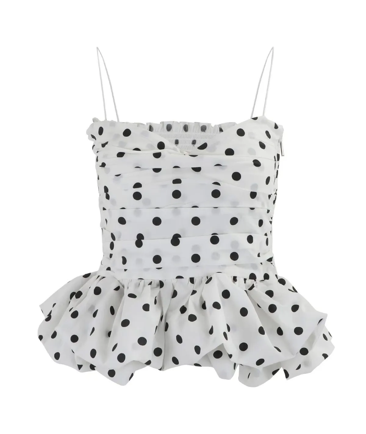 【法式復古】赫本風波點抓皺荷葉邊蓬蓬吊帶背心