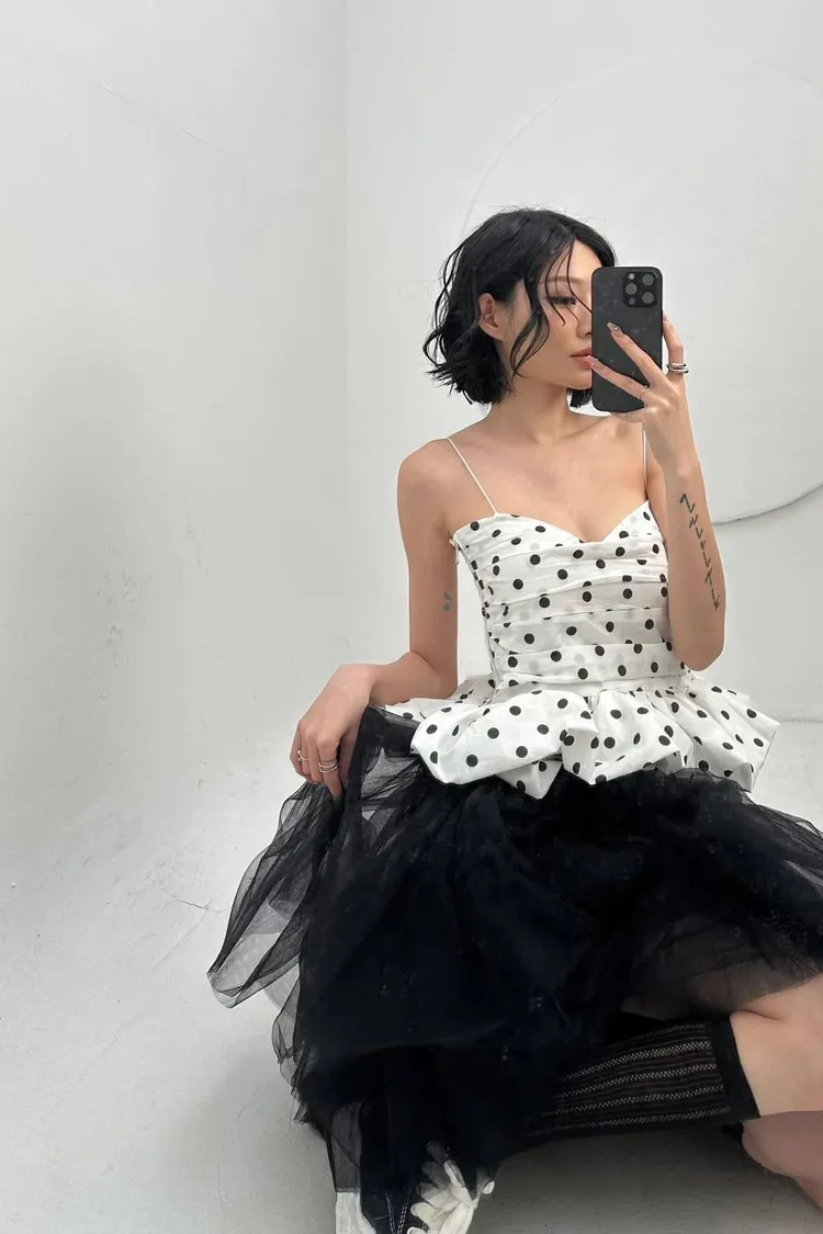 復古的點點圖案,配上精緻的抓皺設計與蓬鬆的荷葉邊, 完全就是赫本電影裡的浪漫模樣啊!😍