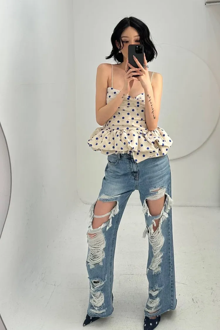 簡單搭配牛仔褲,就是時髦的法式慵懶風; 換上短褲或半身裙,一秒變身復古女伶💃
