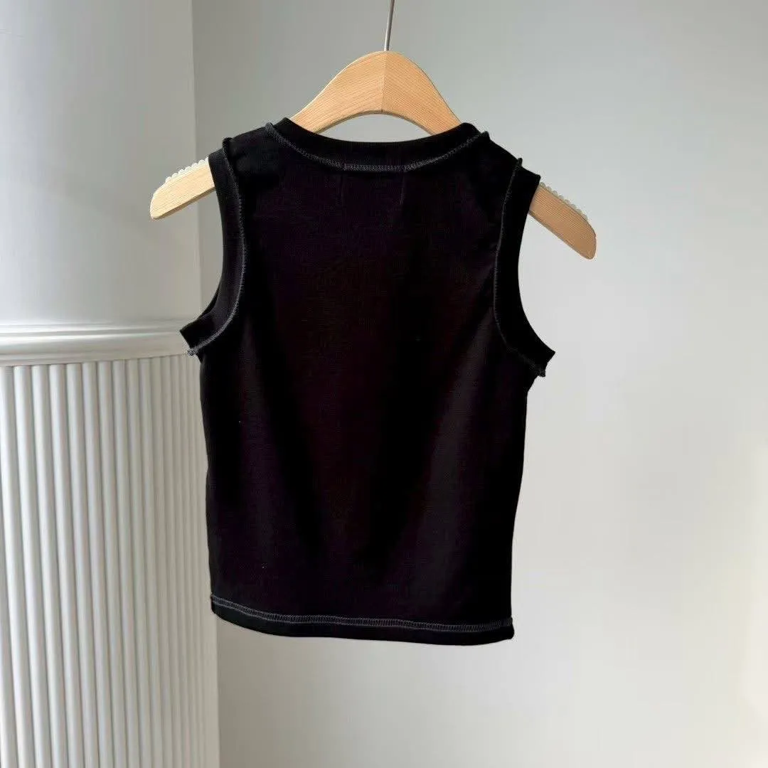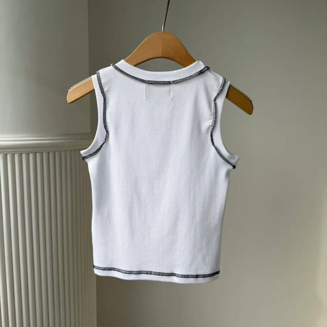 ✔️撞色車線: 領口、袖口及下擺採用復古的黑/白撞色車線(黑色背心配白線,白色背心配黑線),增添層次感與復古 Y2K 氛圍。
