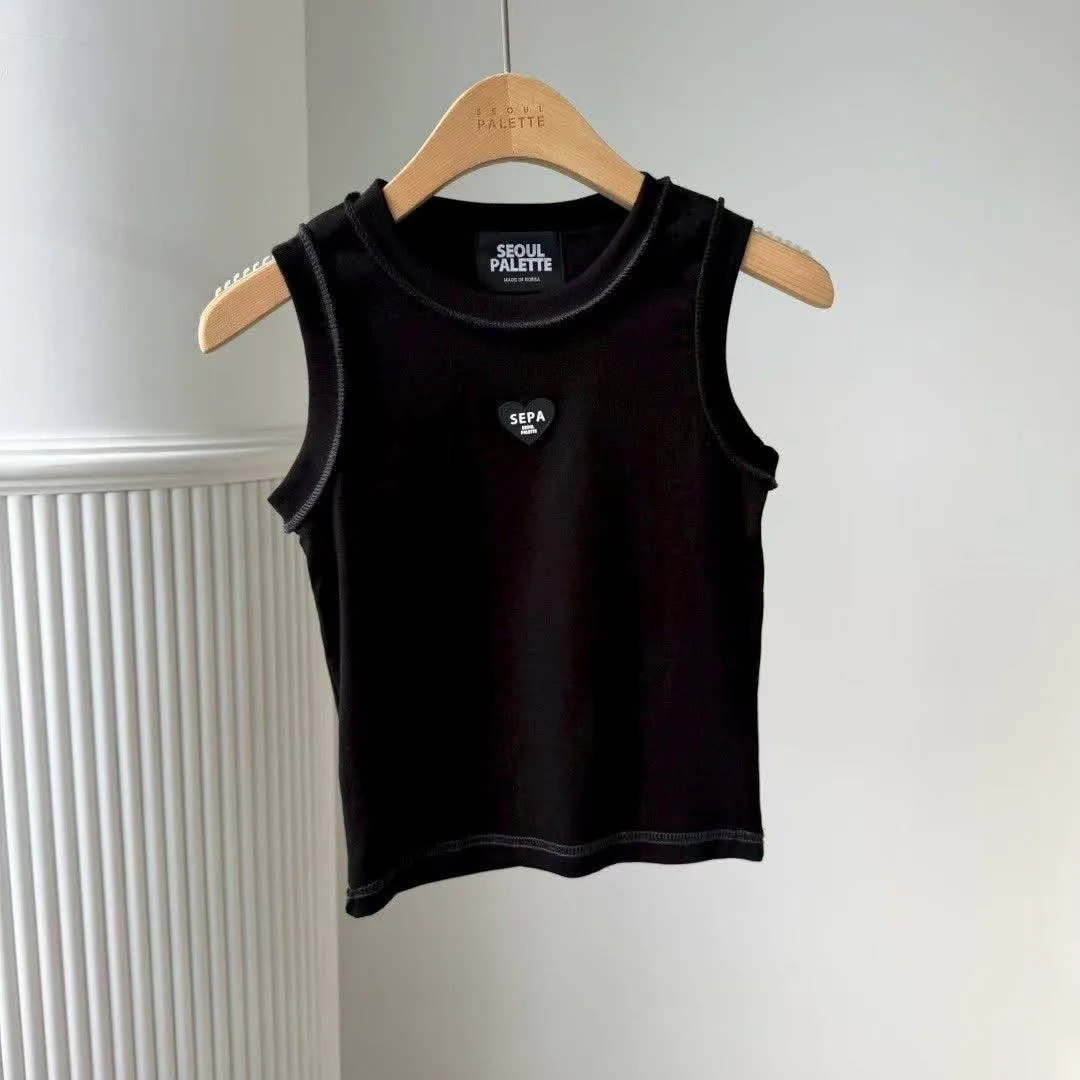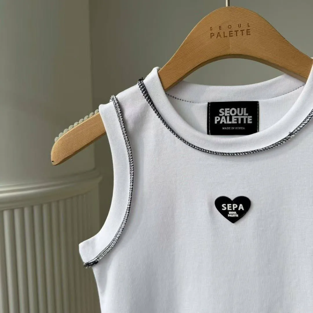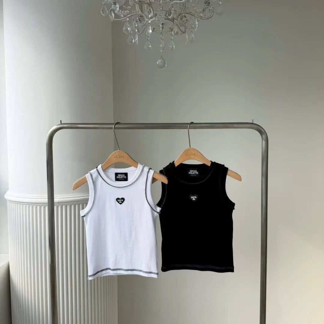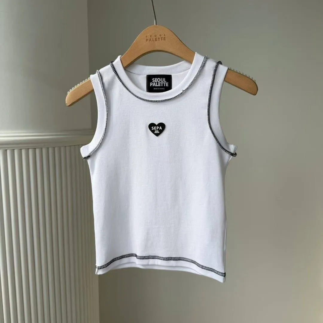 SEPA 的刺繡小愛心背心,配上撞色車線,細節感滿滿,帶點 Y2K 的復古味 💖。