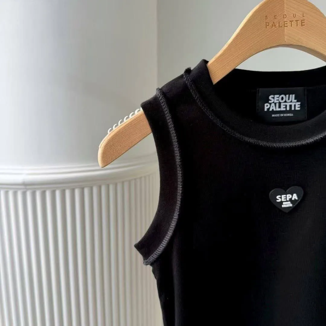 【SEPA 復古甜酷風】刺繡愛心撞色背心