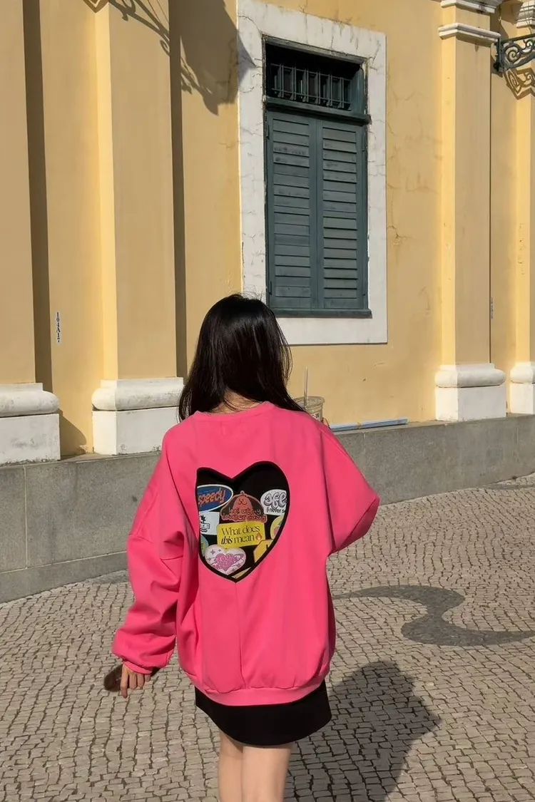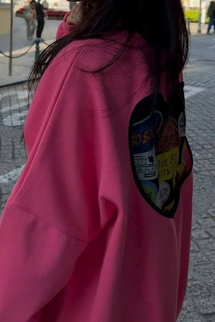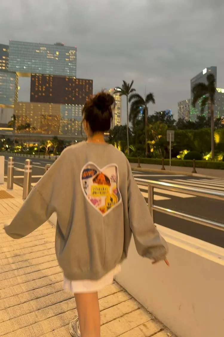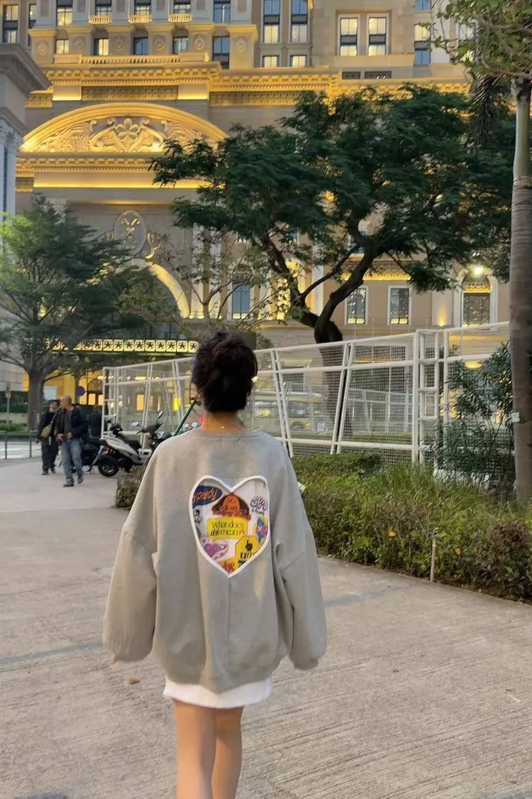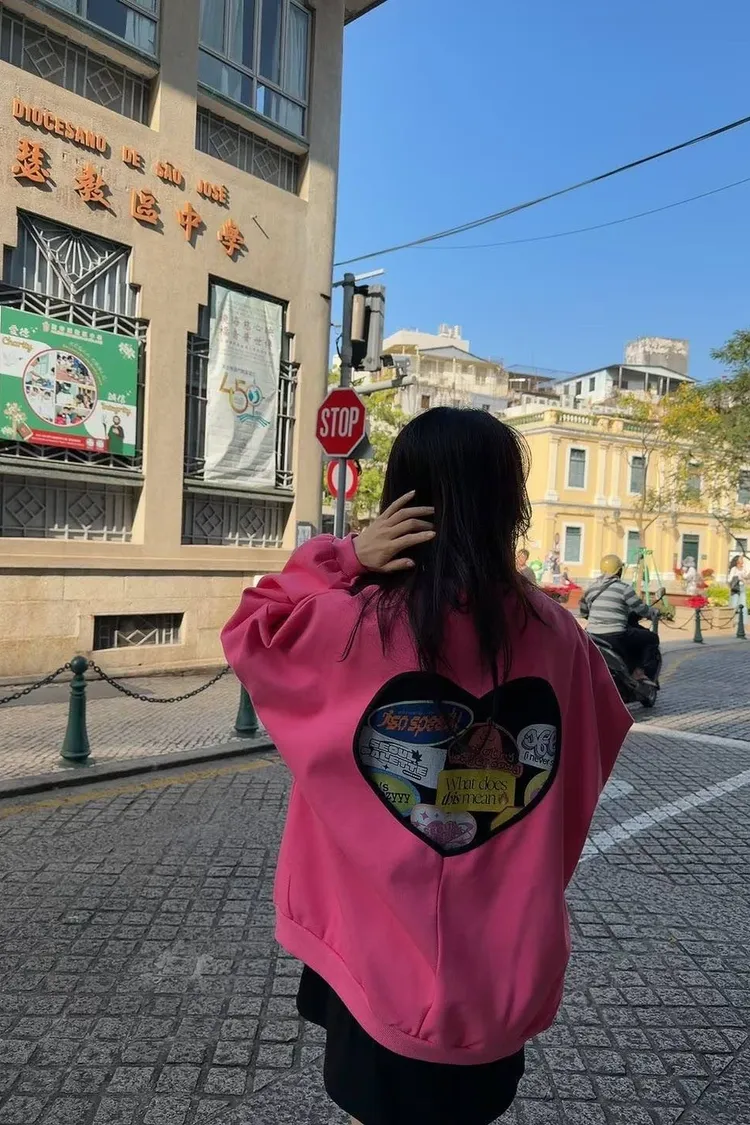背後愛心鏤空衛衣:甜心粉 / 質感灰