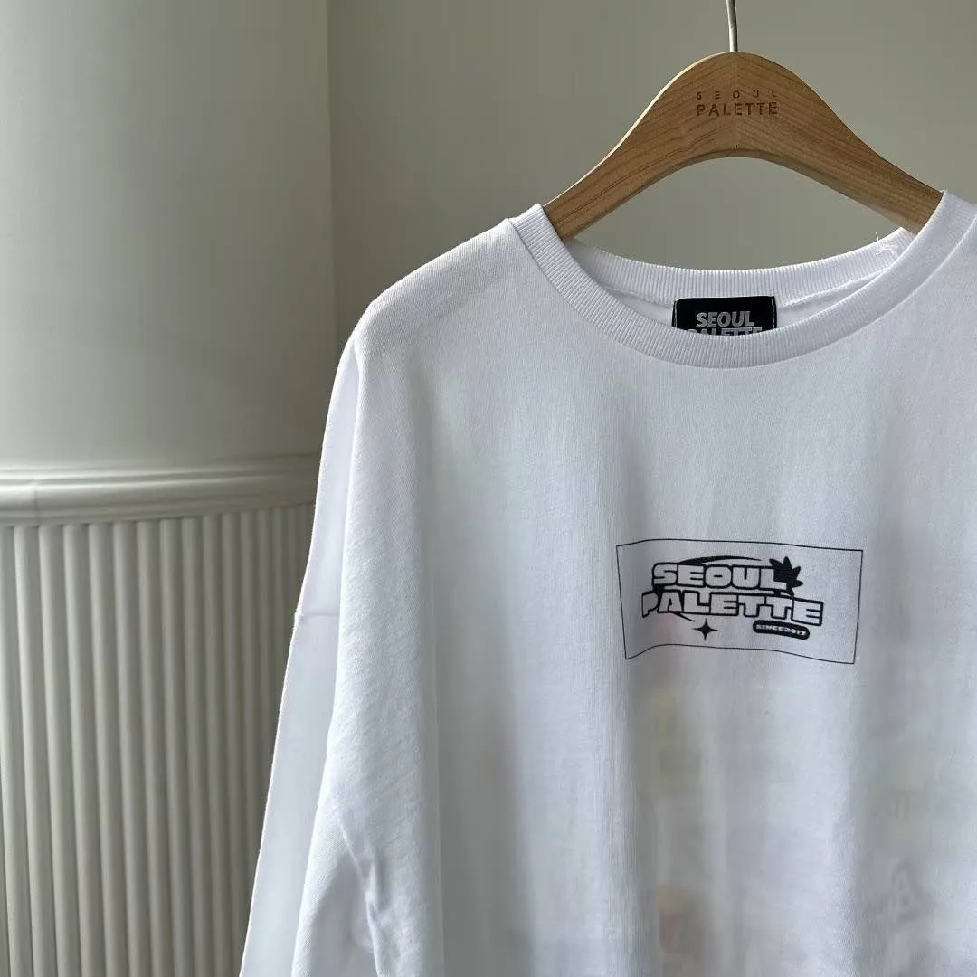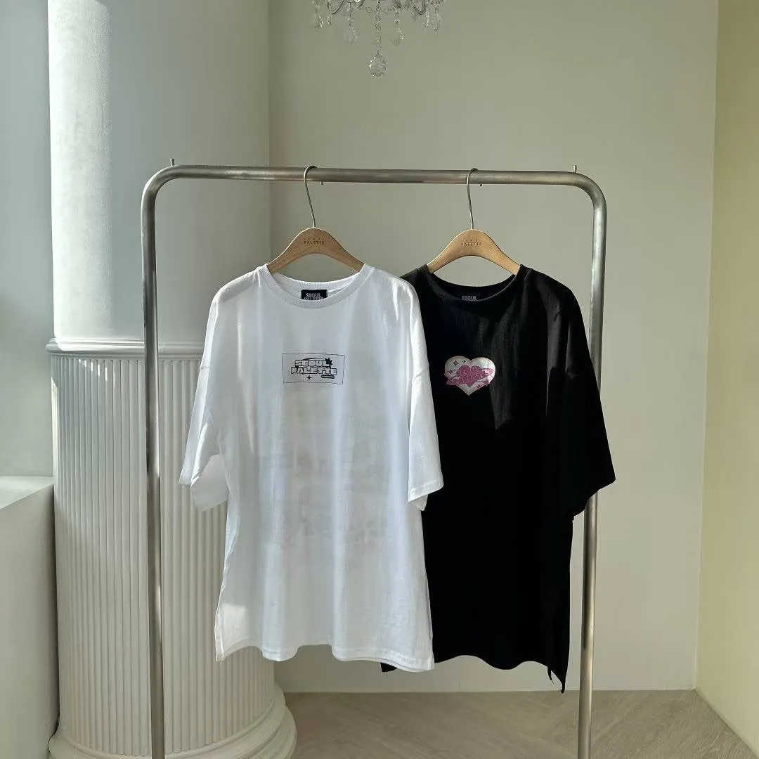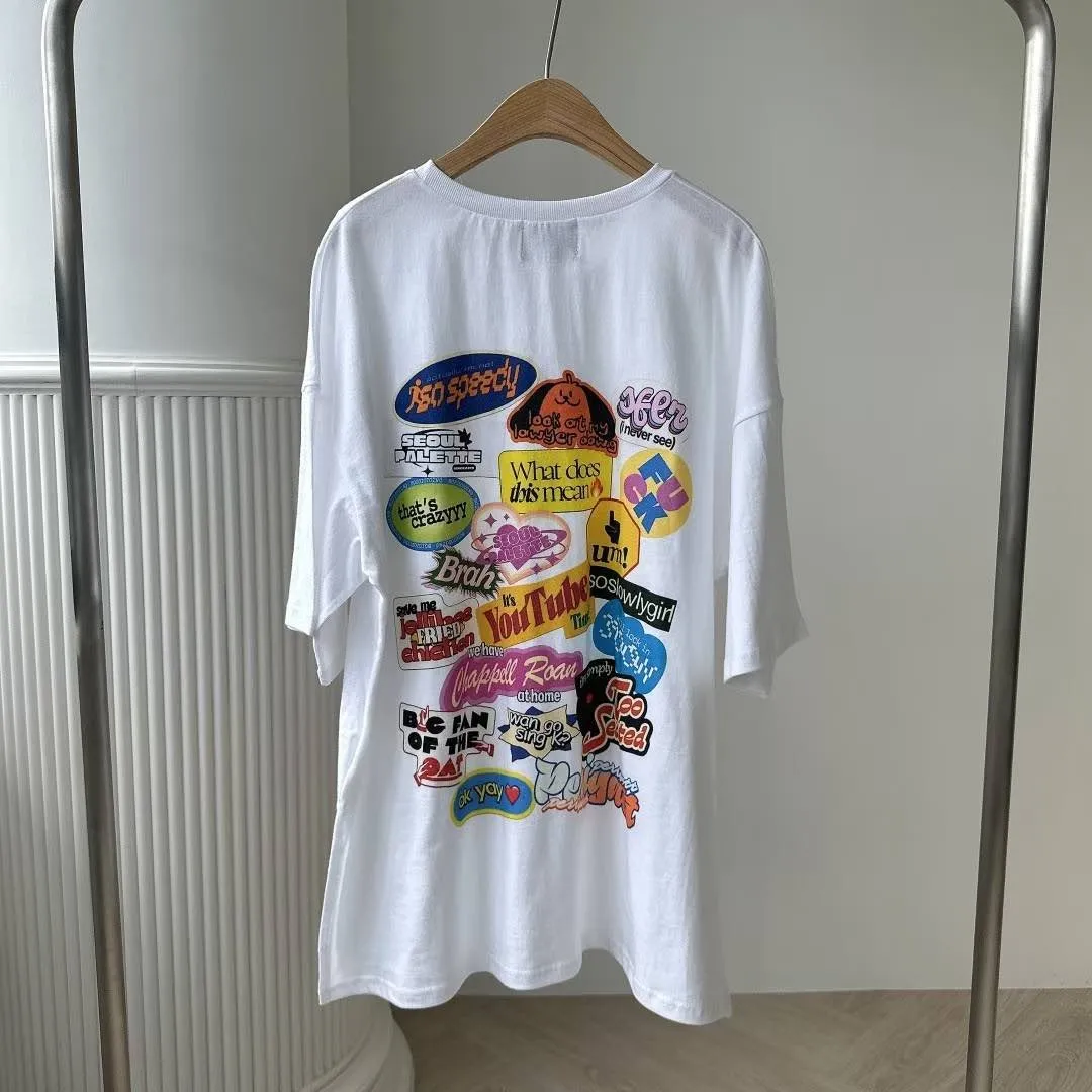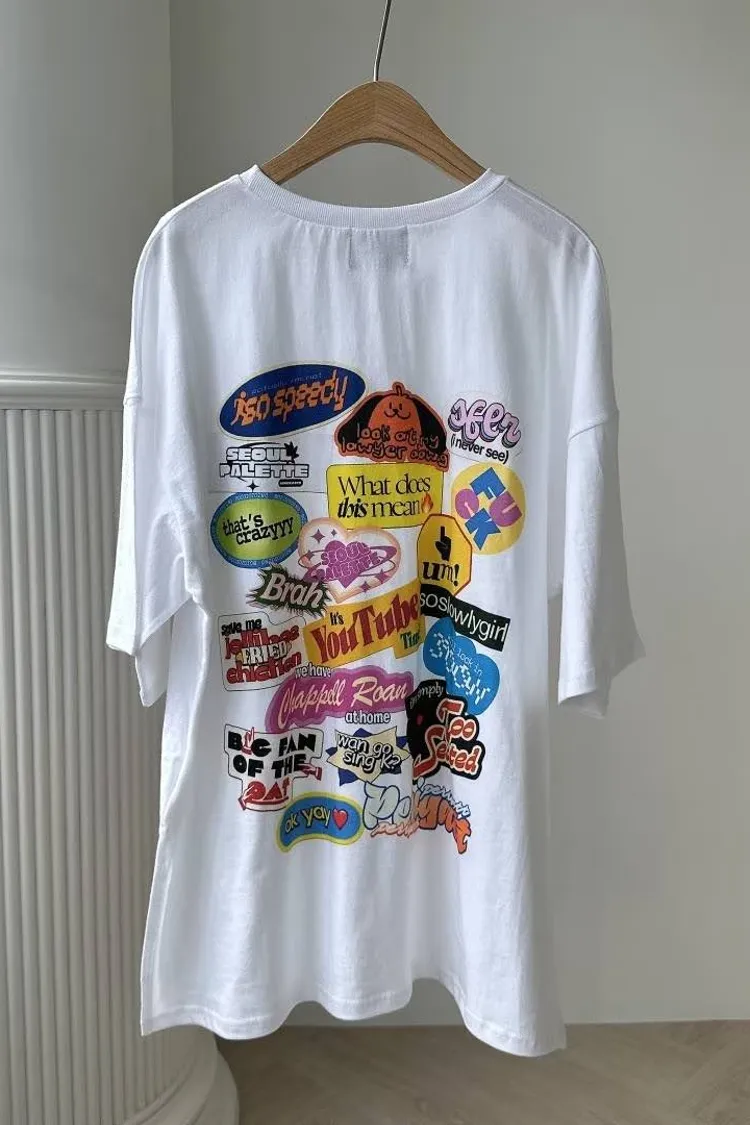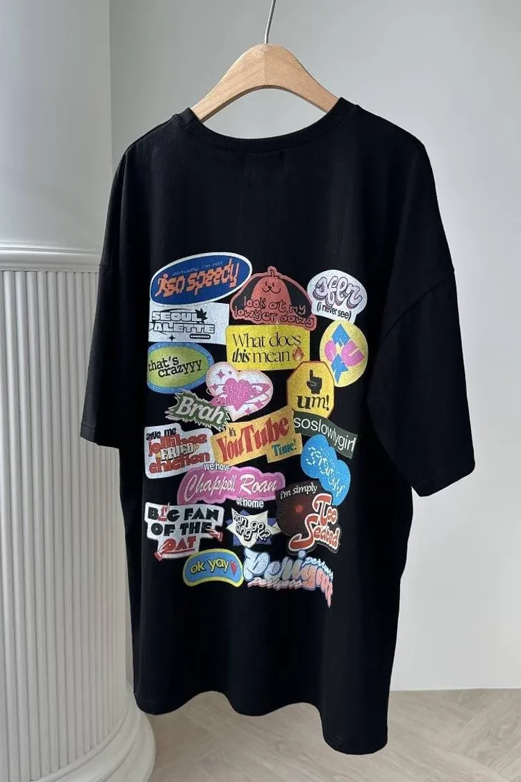 【Seoul Palette】街頭藝術家系列:趣味貼紙塗鴉側開衩寬版大T (黑/白)