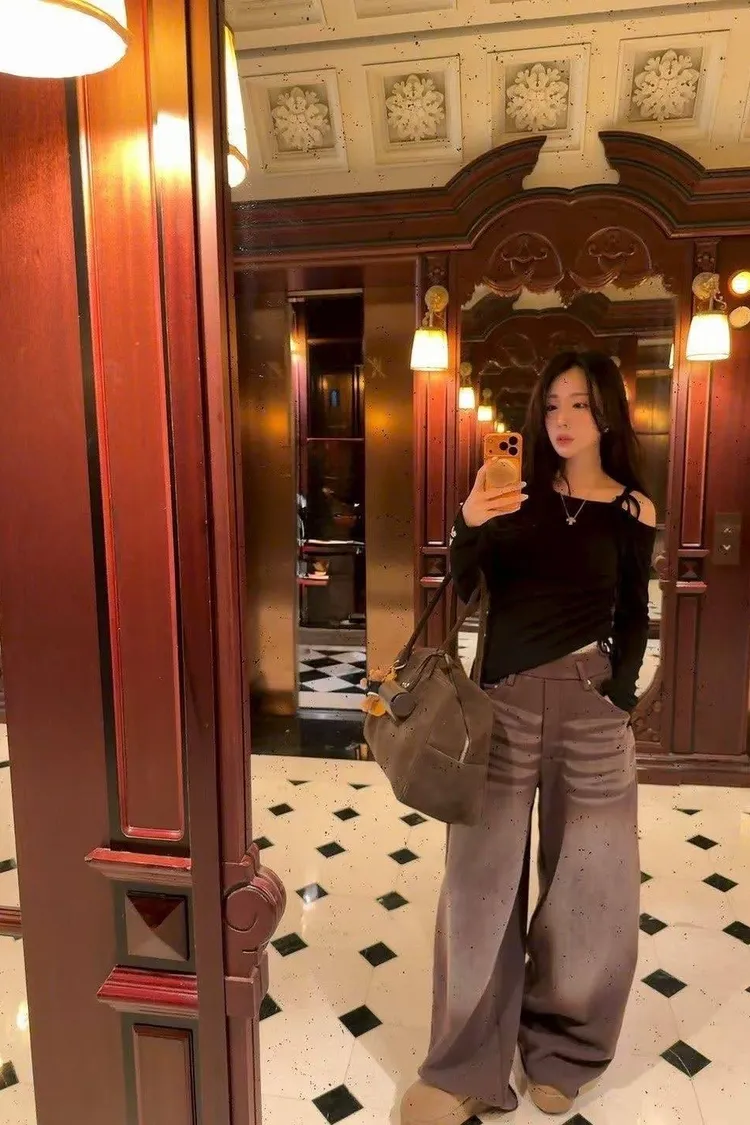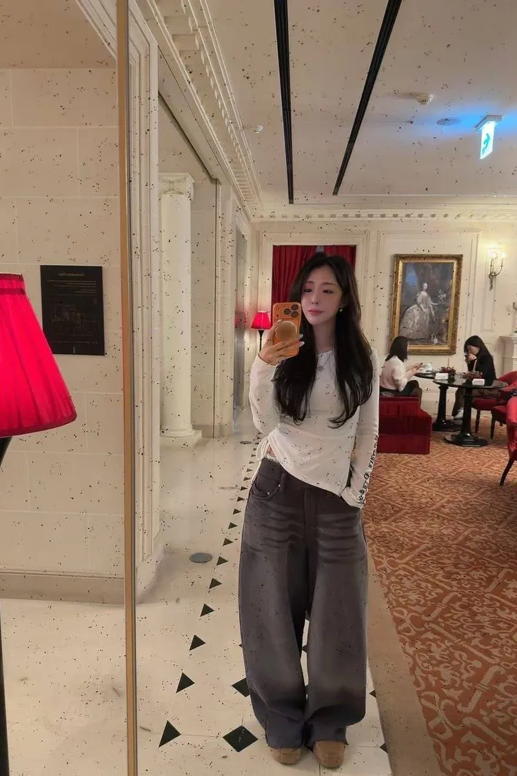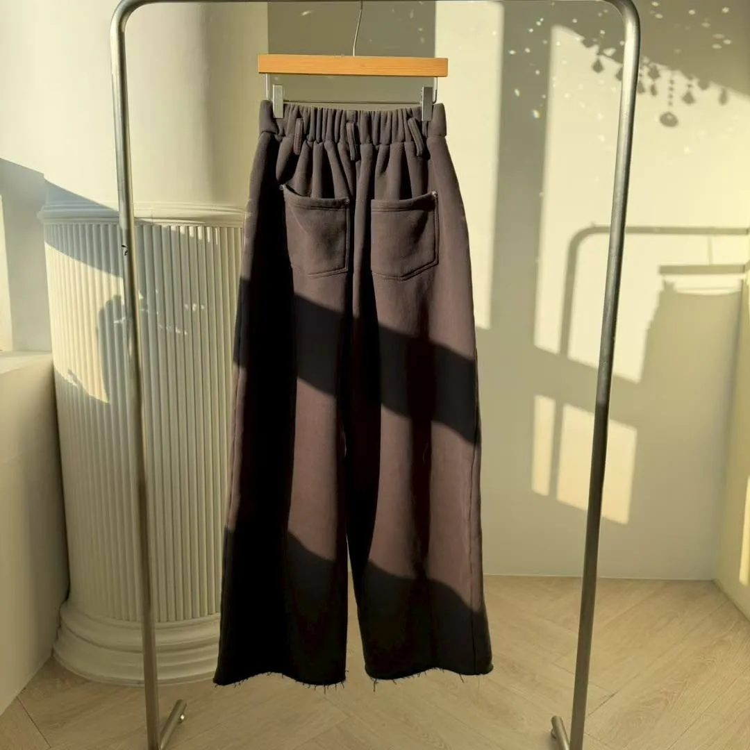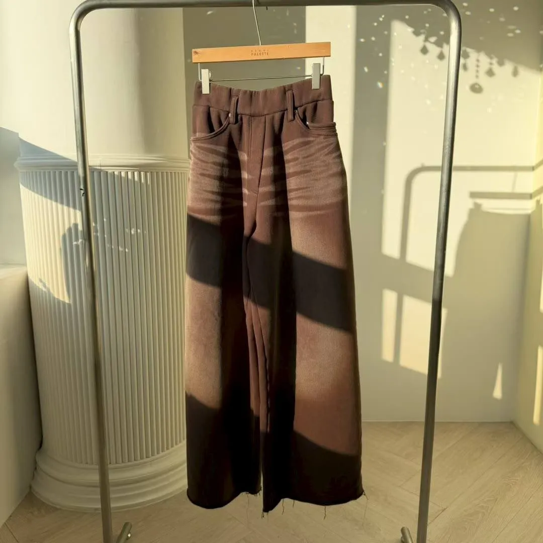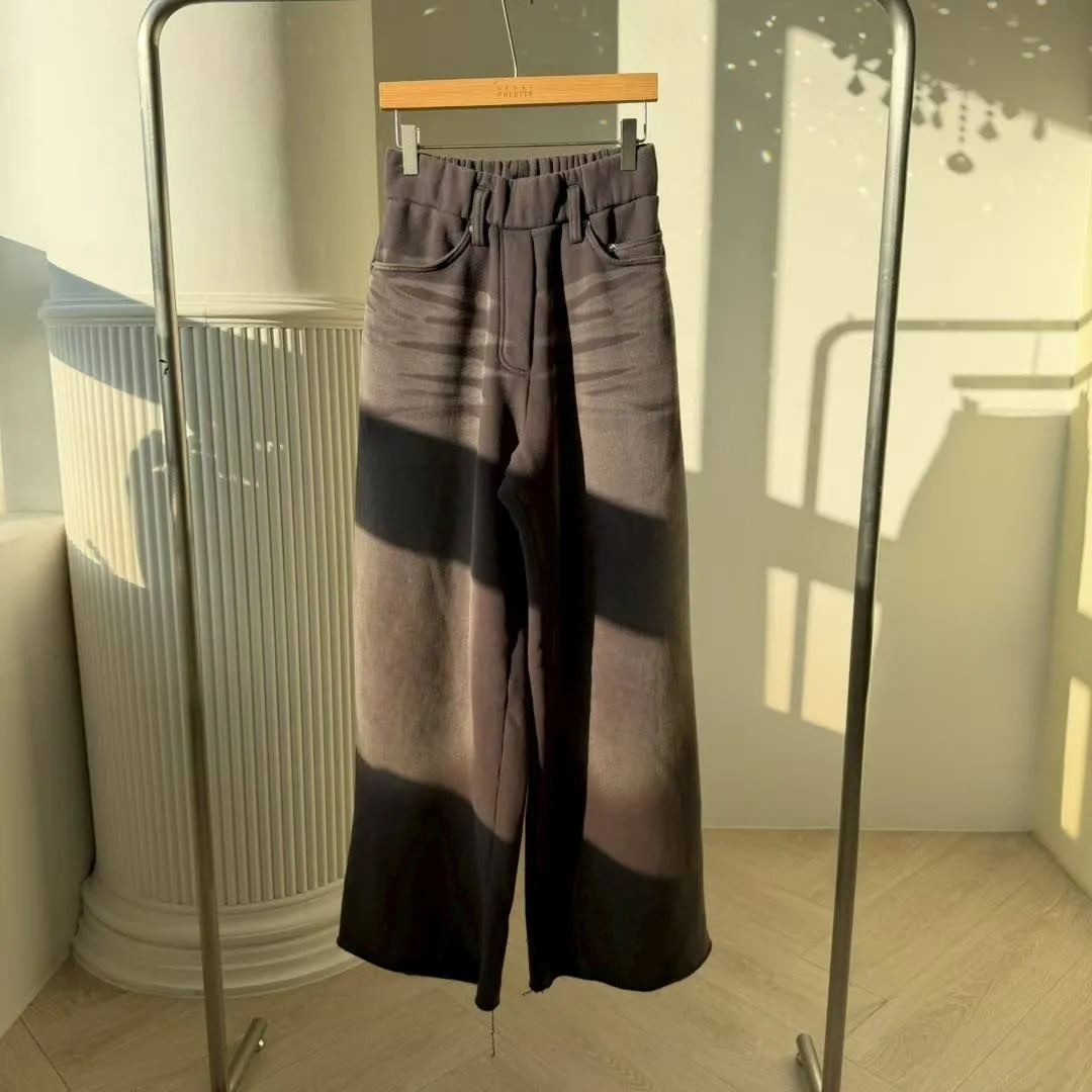 💖「復古水洗寬褲」 獨特的橫向刷紋質感爆棚,大廓型剪裁完美遮腿肉 不管是搭短靴還是厚底鞋,比例直接視覺拉長 5 公分!