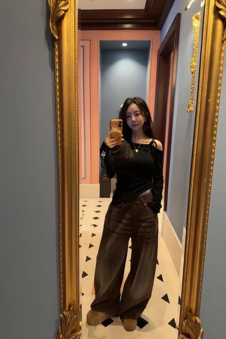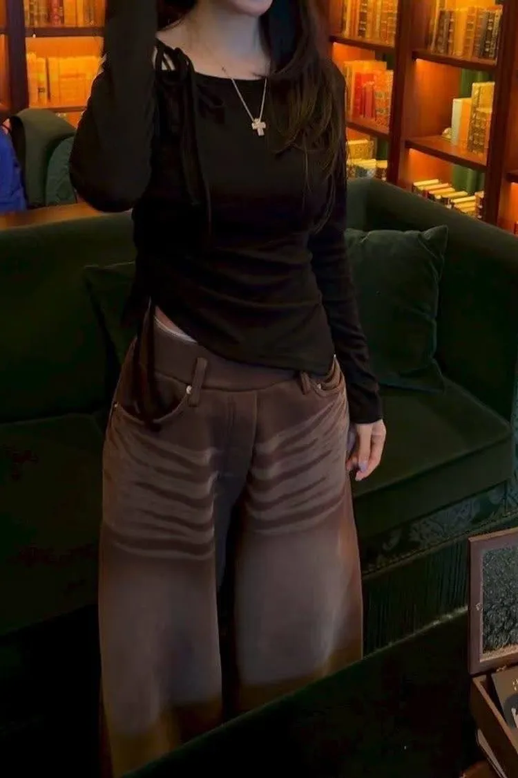 🖤甜辣主張|復古水洗大廓型寬褲(咖啡/灰)