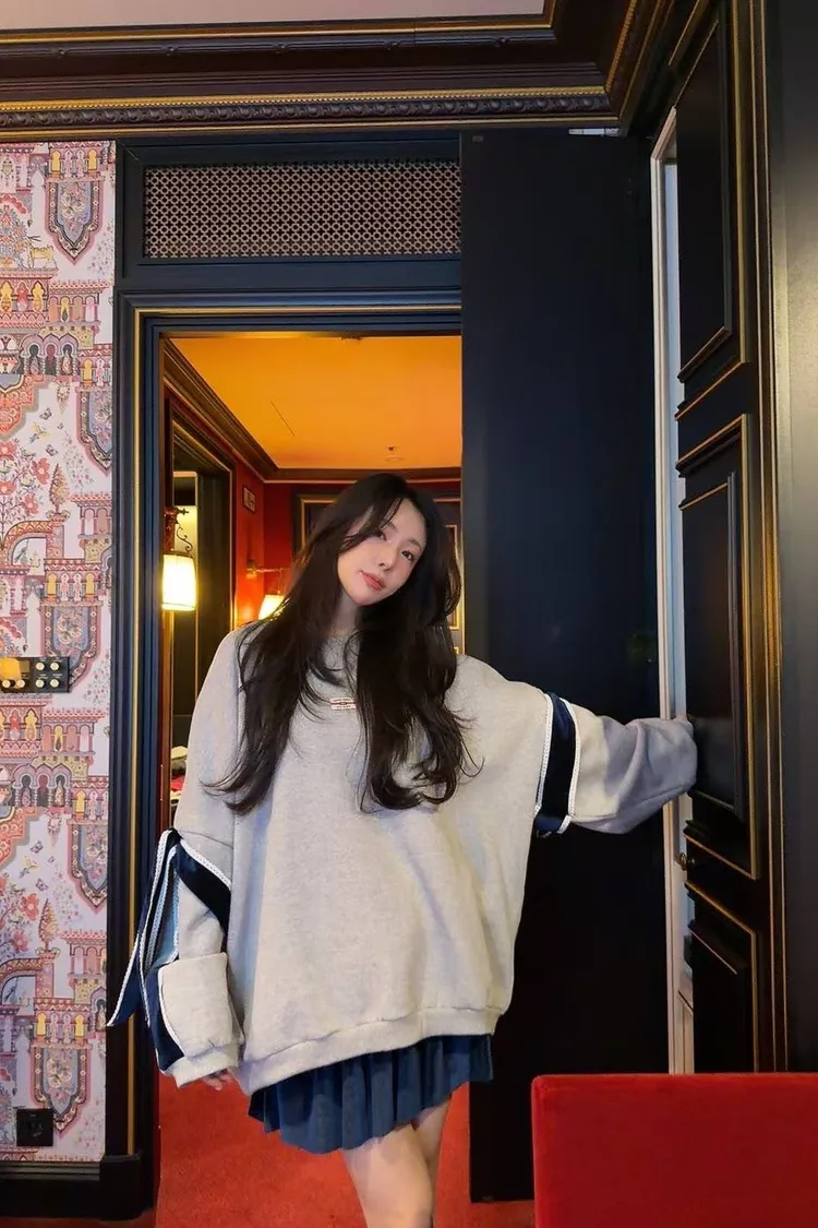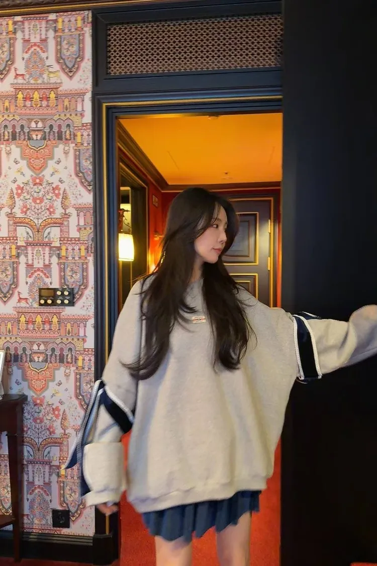 ☑️顯瘦 Oversized: 寬大的落肩版型,隱藏肉肉,營造「紙片人」的慵懶視覺效果。