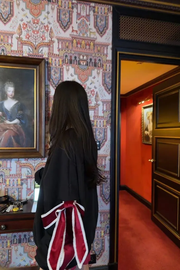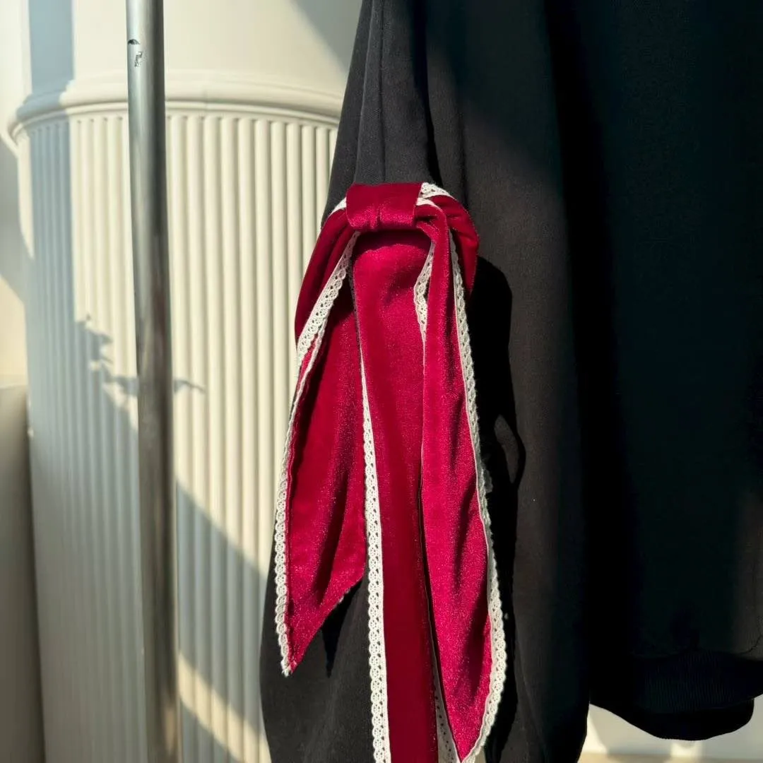 ☑️絕美蝴蝶結細節:柔軟的絲絨材質搭配蕾絲滾邊,異材質拼接質感爆棚。