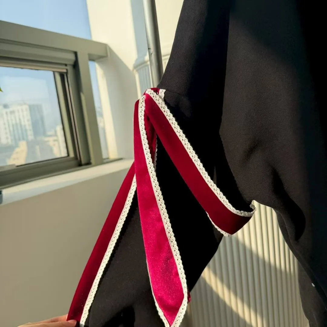 袖口藏了超大驚喜!柔軟的絲絨織帶配上精緻蕾絲邊,垂墜在手腕處,舉手投足都是焦點 🎀。