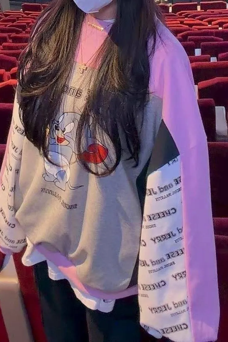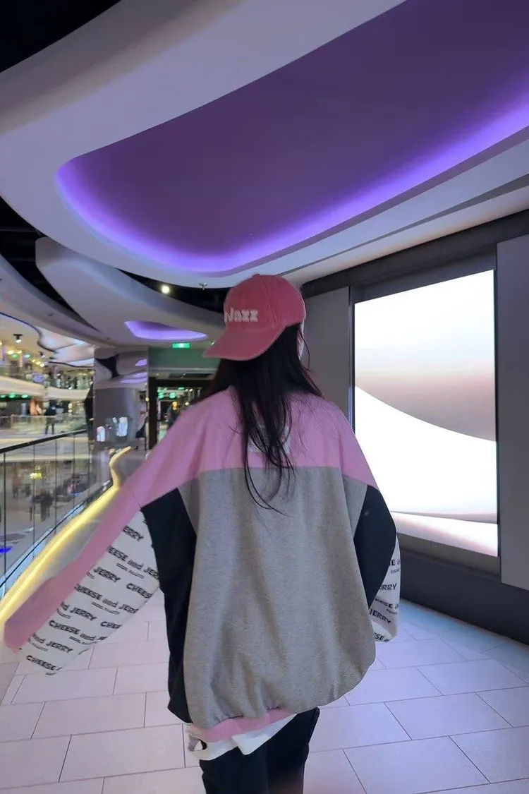 ✅袖口亮點:袖子採用灰色字母滿版印花拼色,增加視覺層次感。