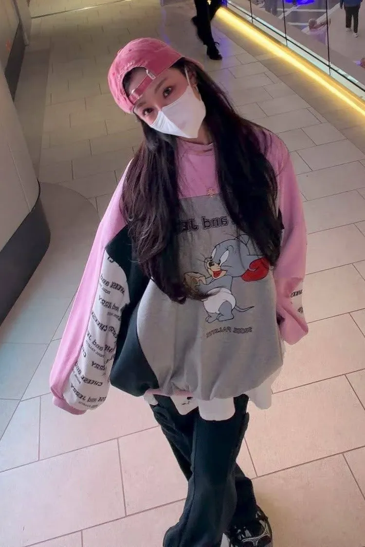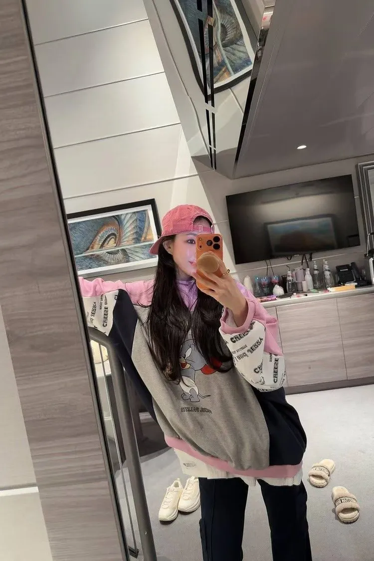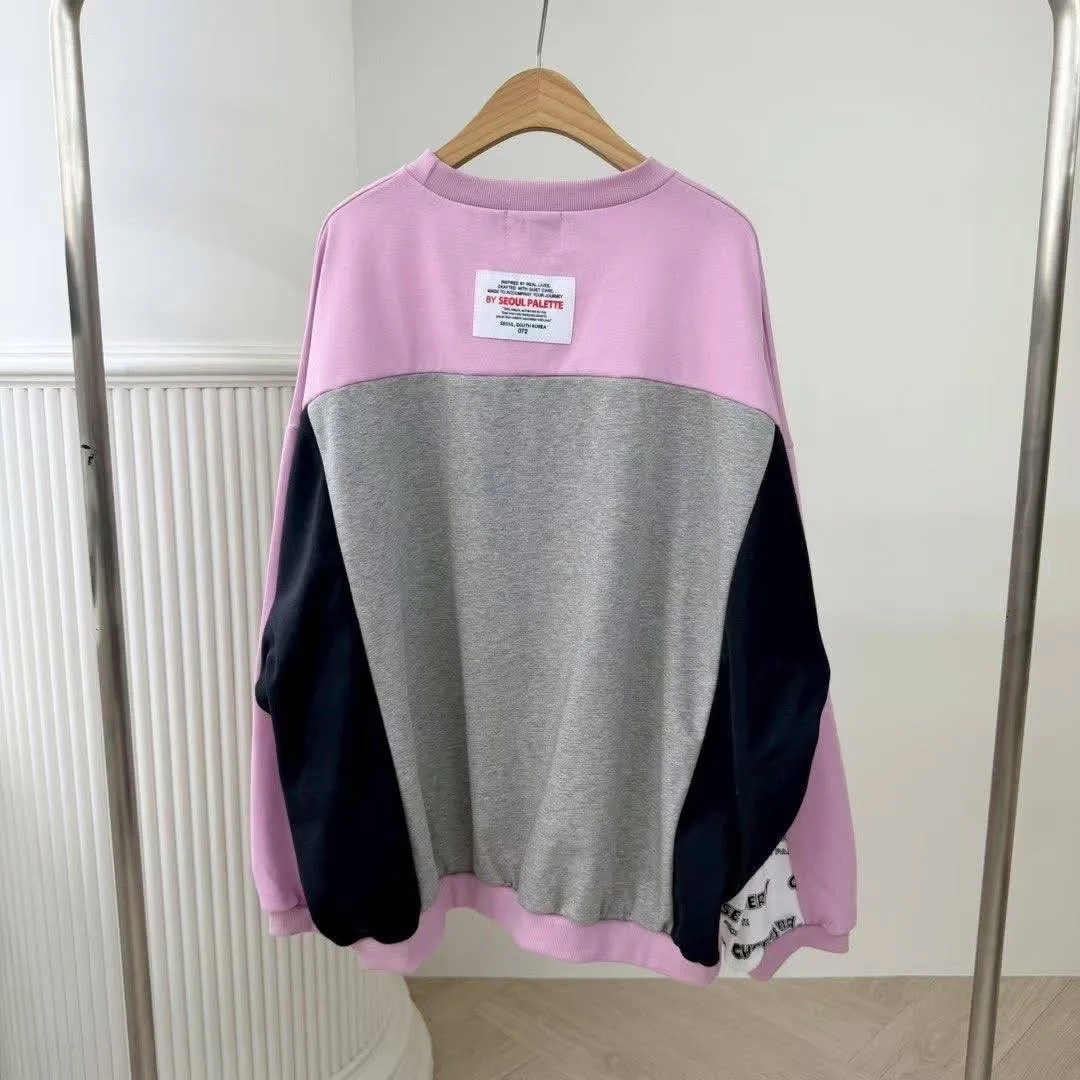 👚 衛衣亮點: 大版 Oversize 剪裁,穿起來有一種「偷穿男朋友衣服」的嬌小感!撞色拼接加上袖口的字母印花,細節感拉滿,不管是配短褲下半身失蹤,還是配這款長褲都超好看!