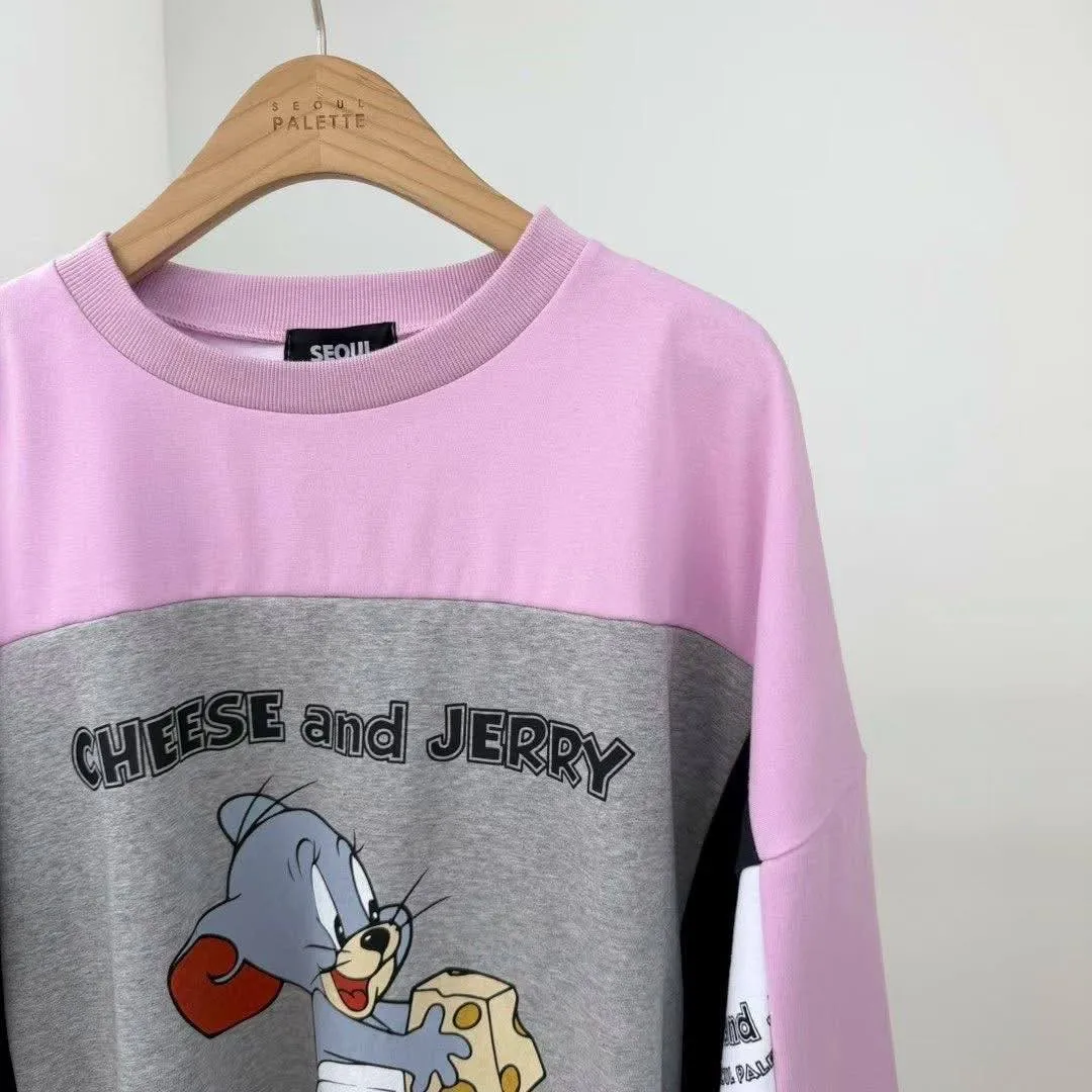 ✅設計印花:正面採用高品質 Tuffy 抱著芝士的精緻印花,搭配 "CHEESE and JERRY" 與 "Seoul Palette" 字母點綴。