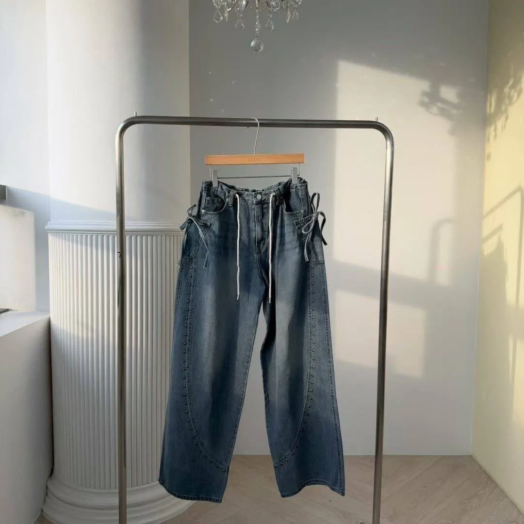 ✔️細節設計:側邊加入金屬鉚釘裝飾,搭配兩側可調整式蝴蝶結繫帶,甜酷感並存。