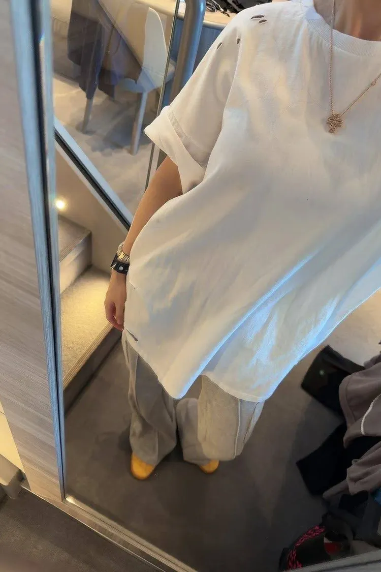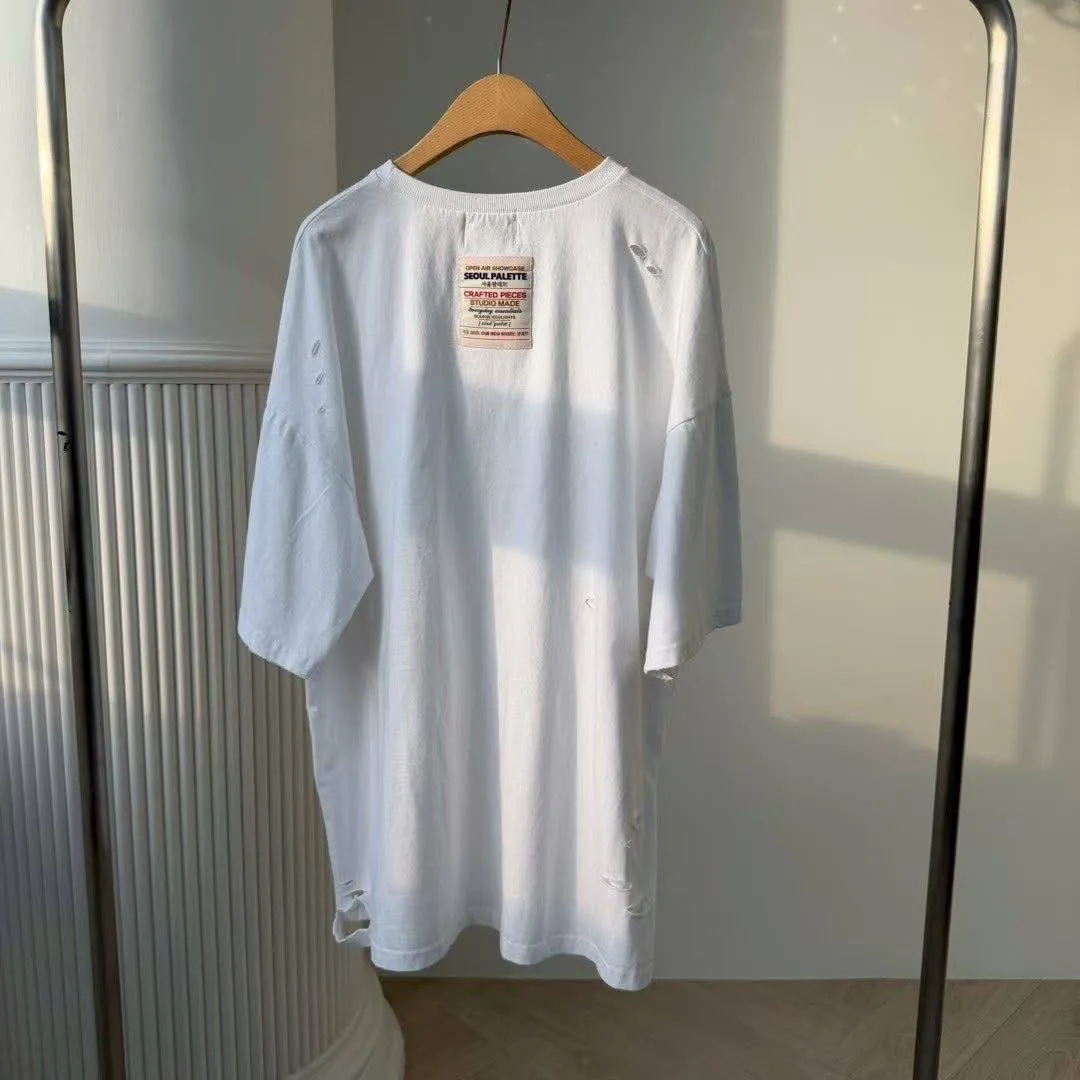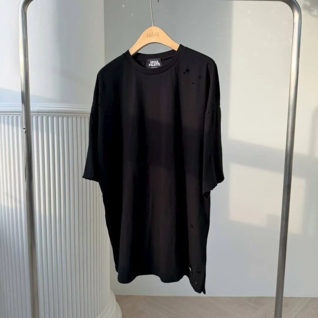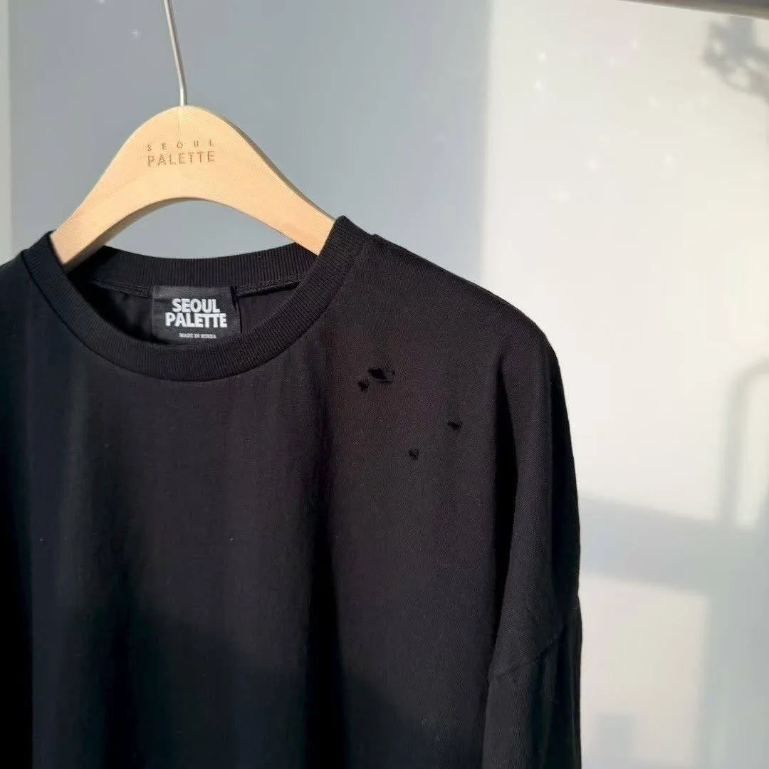 這件不只是普通的素T! 自帶「空氣感」的寬鬆廓形,加上剛剛好的手工破損細節, 隨便一穿就是那種走在首爾街頭的率性歐膩感。