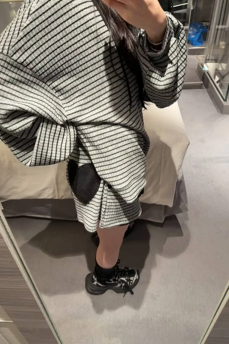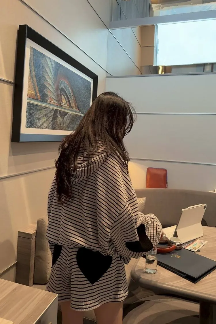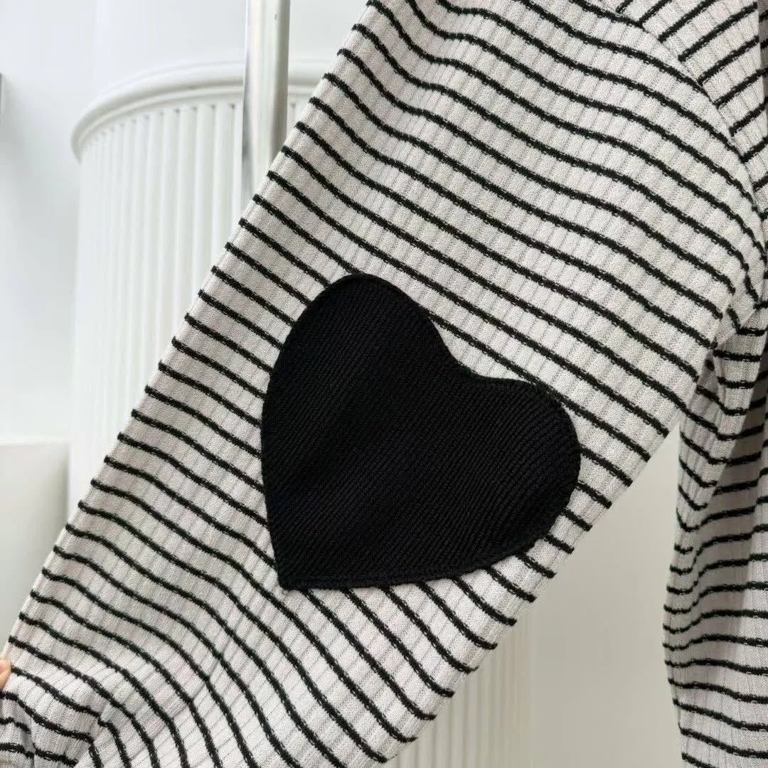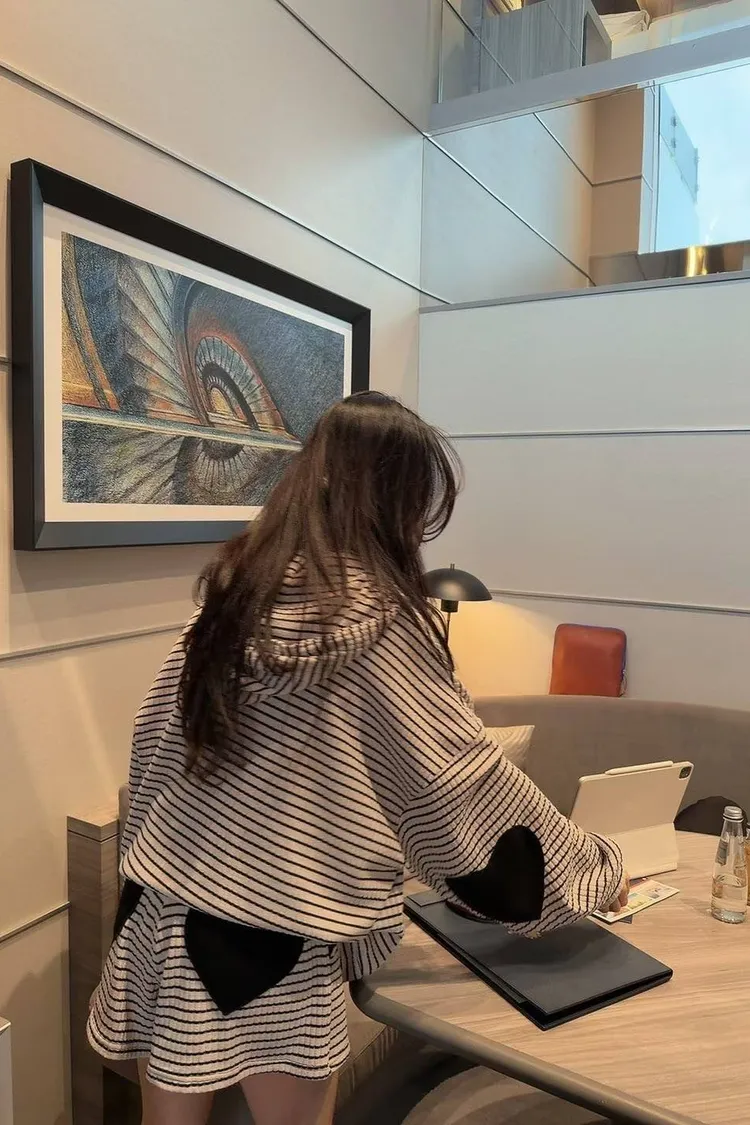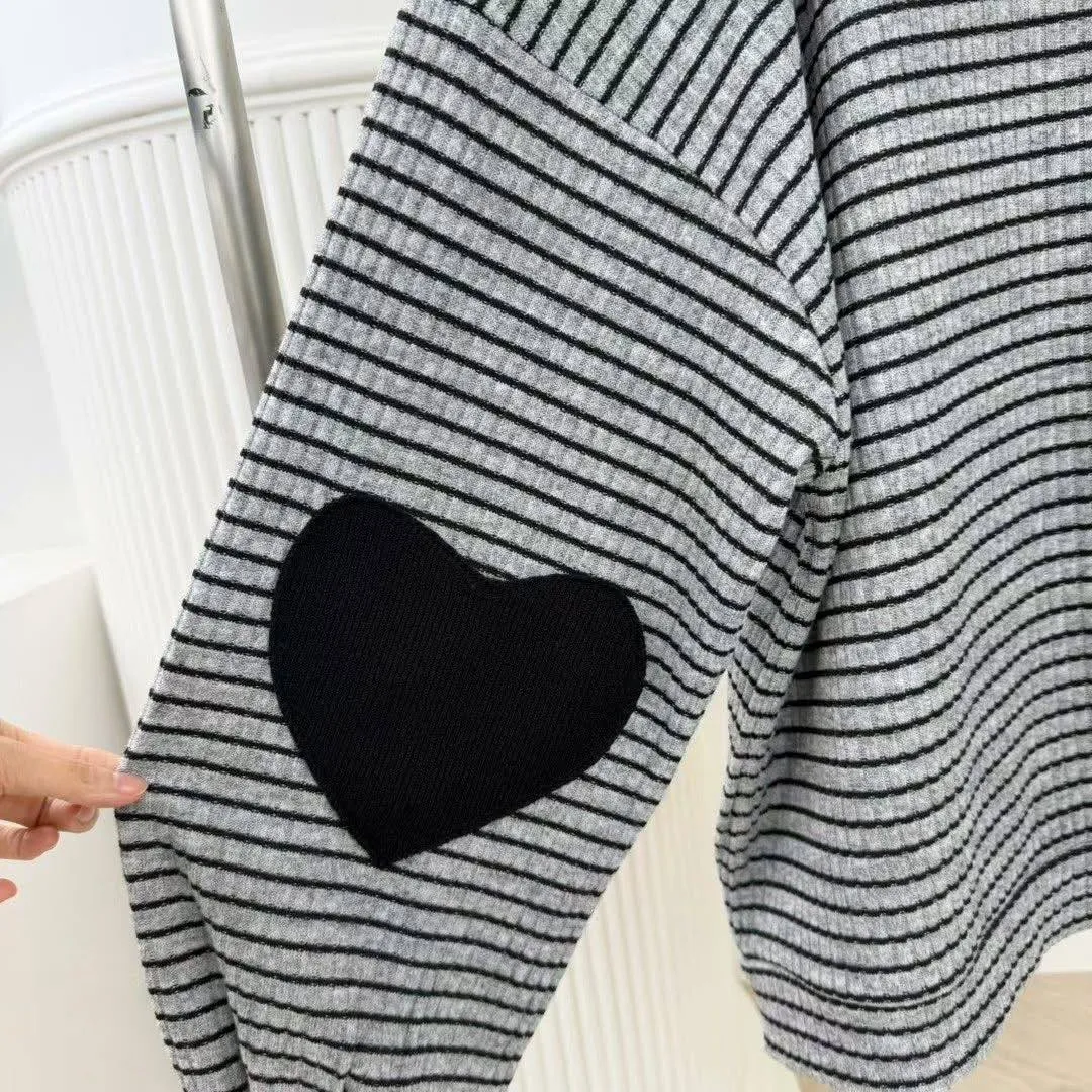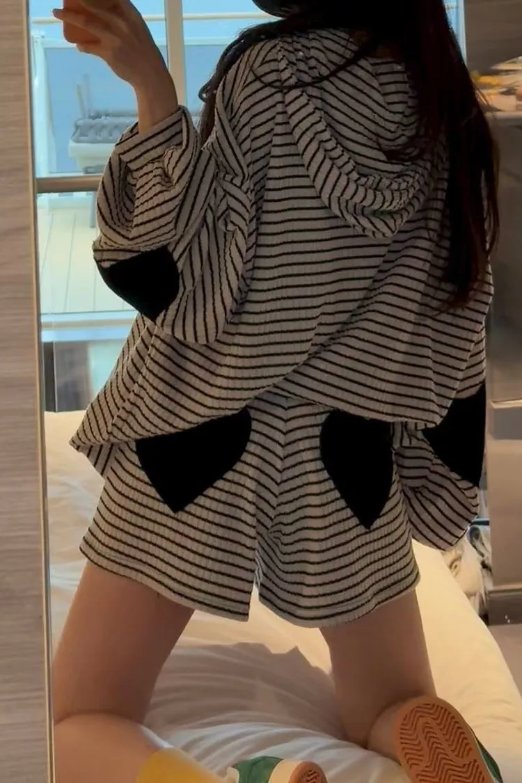 #韓系穿搭 #條紋套裝 #愛心補丁 #慵懶風 #OOTD #早秋新品