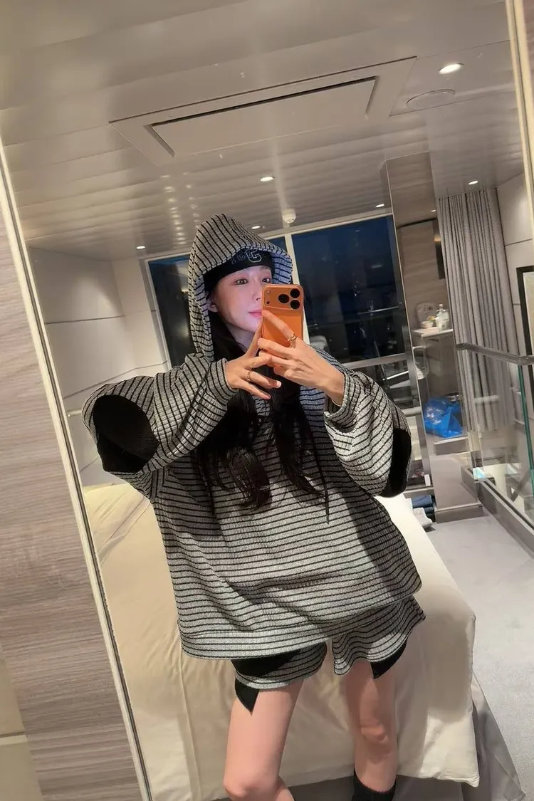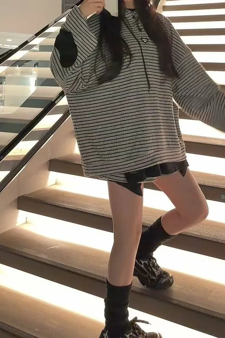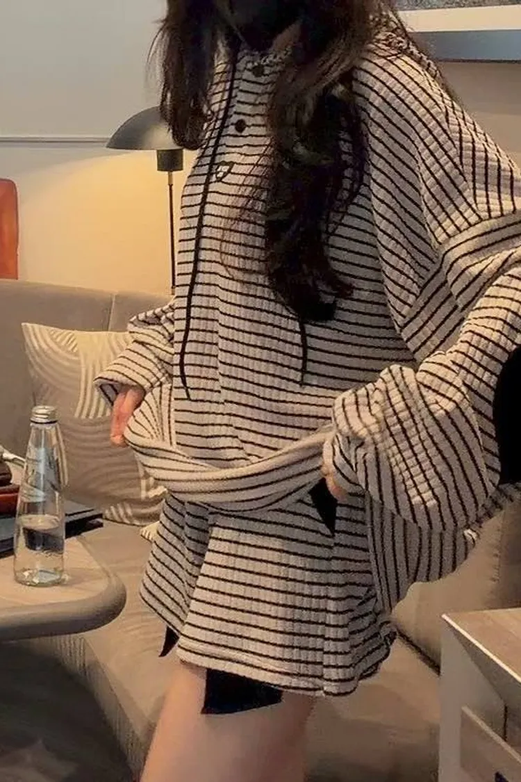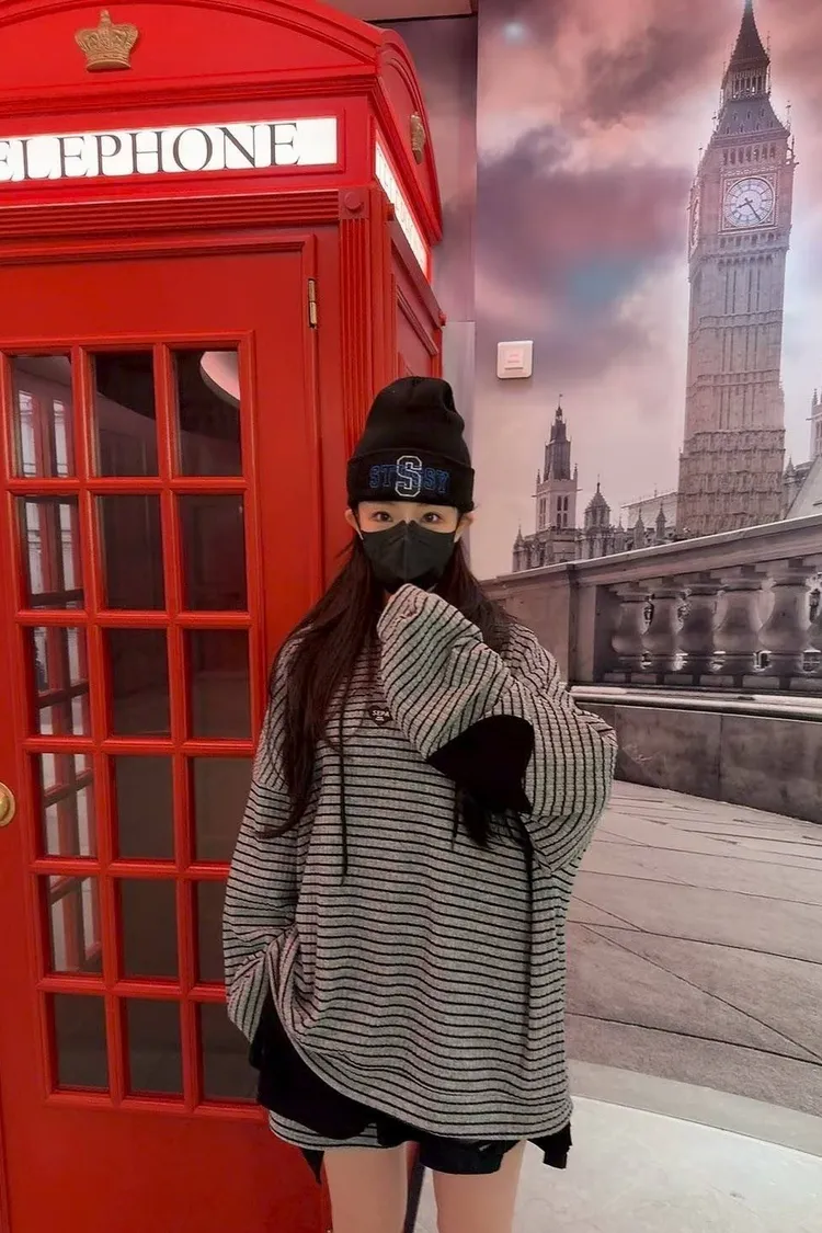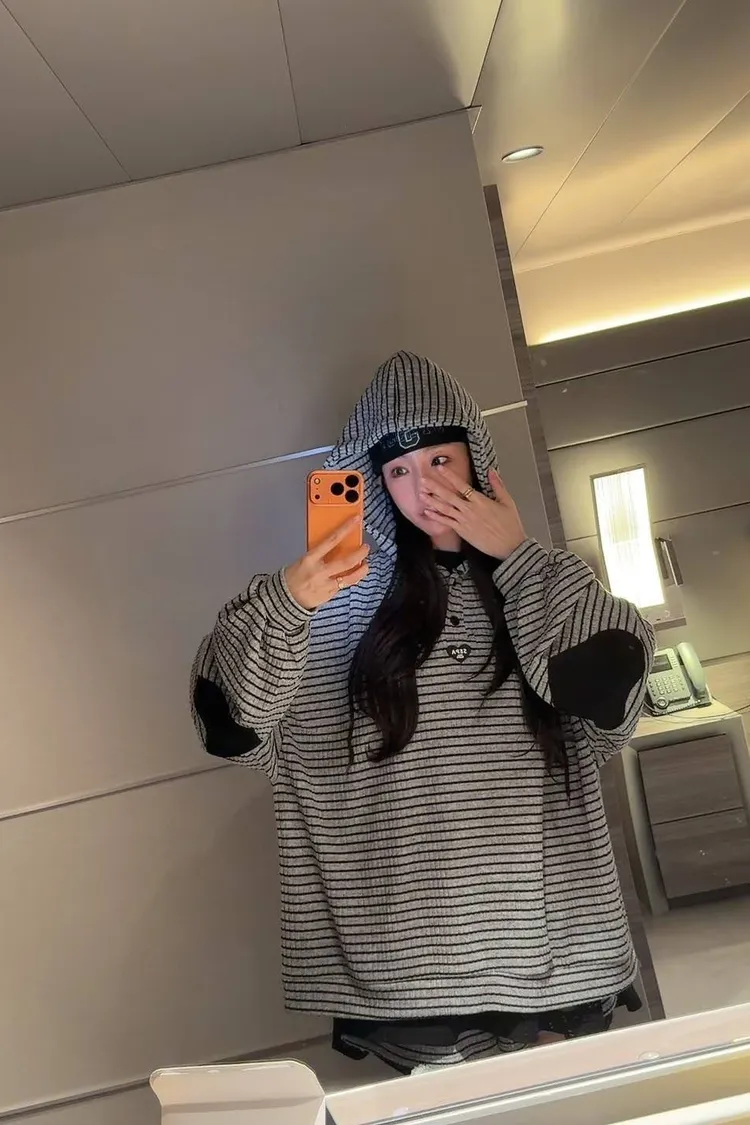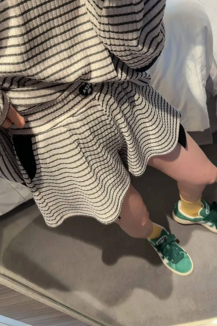 #韓系穿搭 #條紋套裝 #愛心補丁 #慵懶風 #OOTD #早秋新品