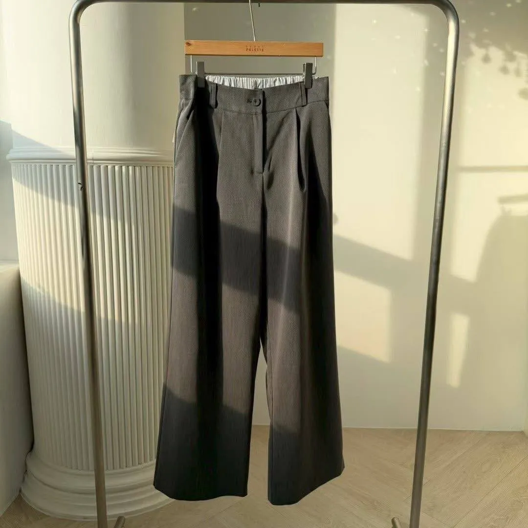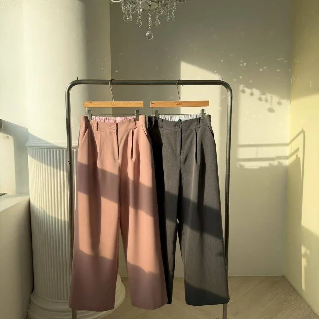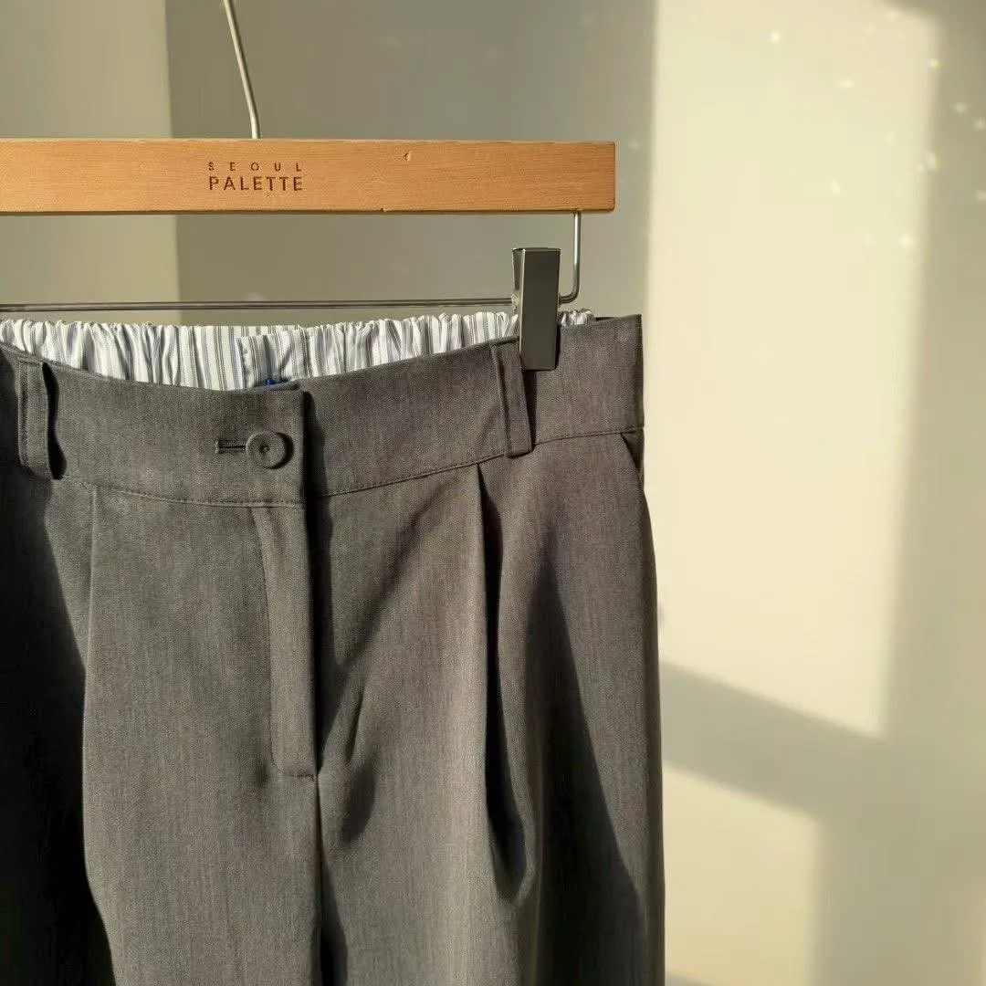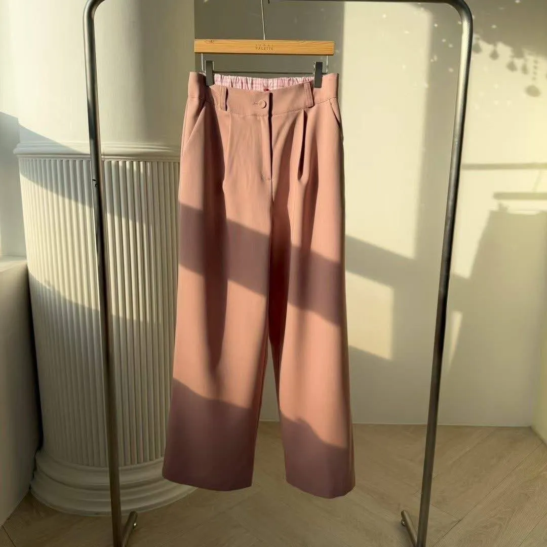 【Seoul Chill】慵懶系雙層腰頭西裝套裝(微寬版剪裁 / 粉、灰兩色)