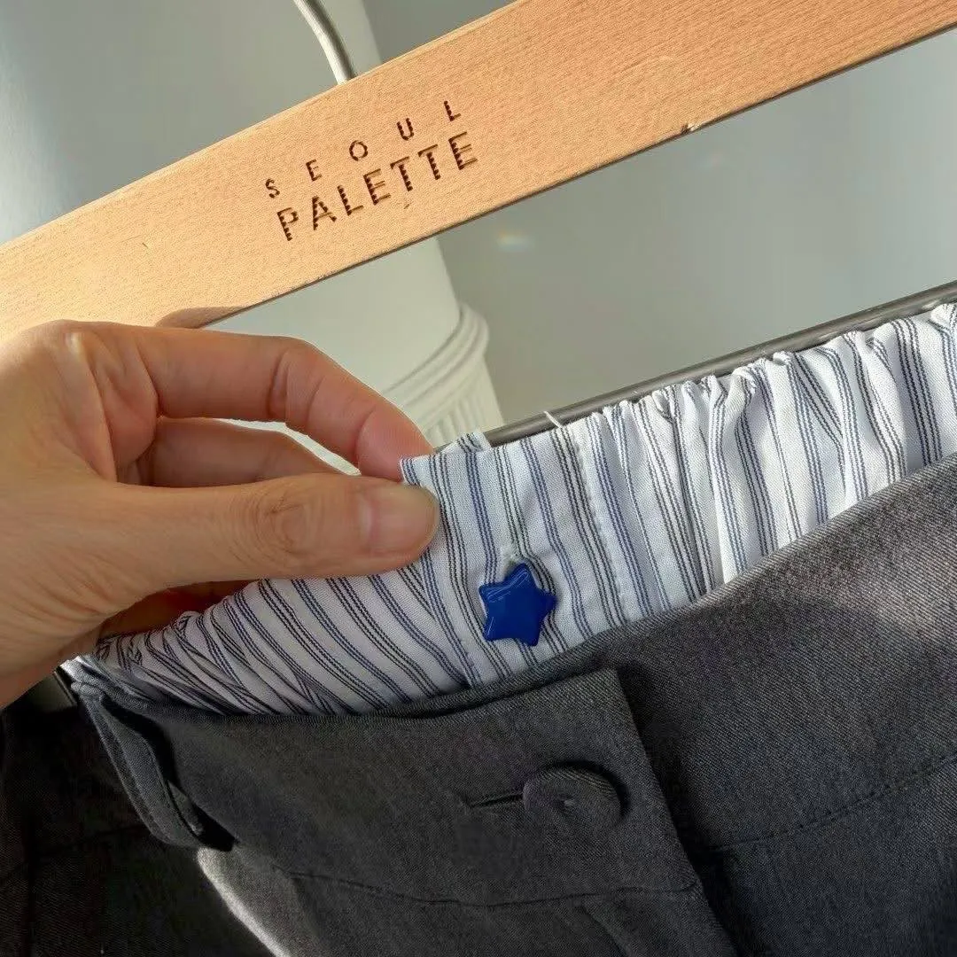 ☑️長褲:假兩件條紋內腰頭設計、高腰壓褶、直筒寬褲版型,完美遮肉顯瘦。