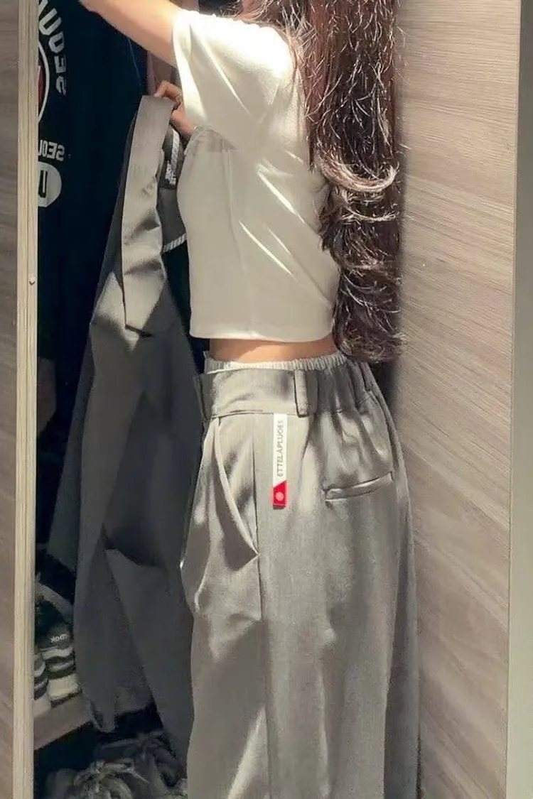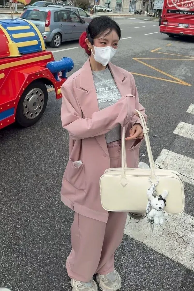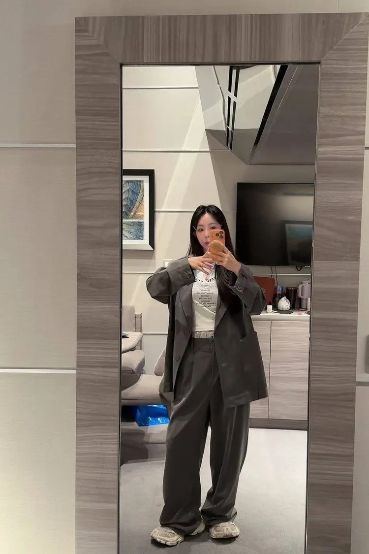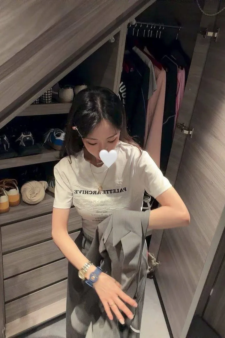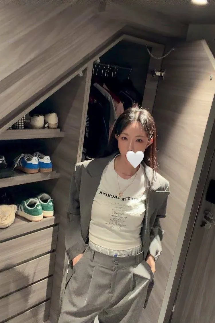 微微修身的短版剪裁,搭配高腰西裝褲真的「胸以下全是腿」! 不管是像歐膩一樣套上粉色西裝套裝走甜酷風, 還是搭灰色套裝走都會高級感, 這件蕾絲 T 都能讓整身穿搭瞬間有了視覺重點。