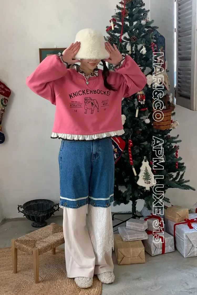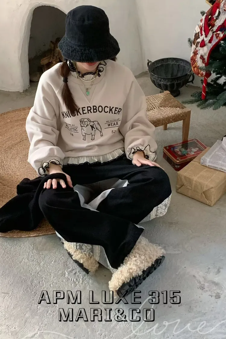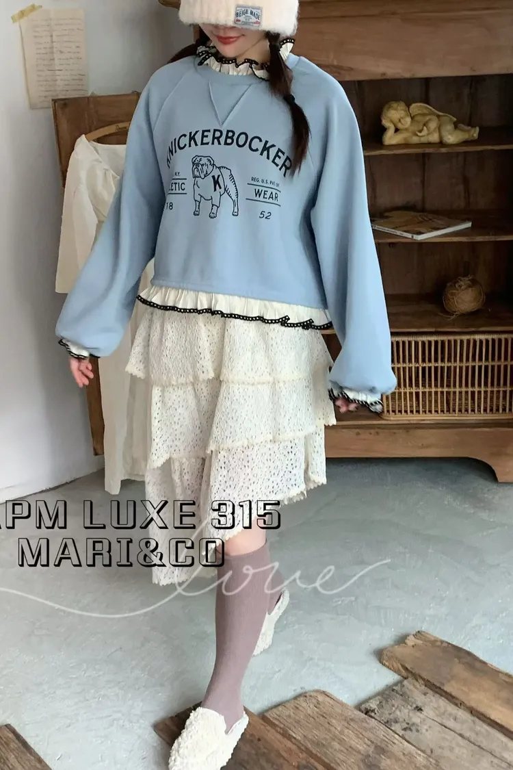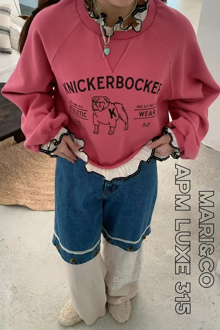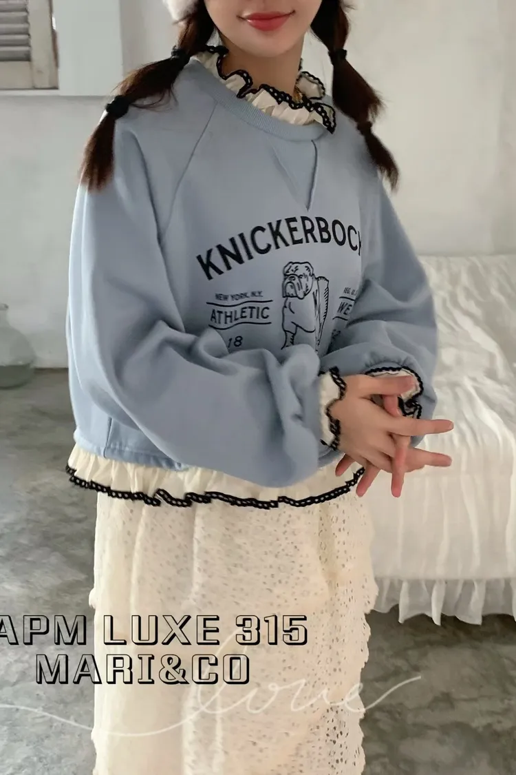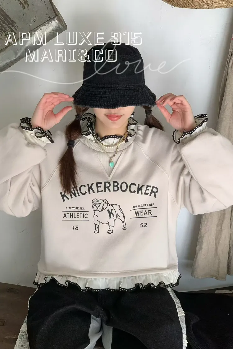 胸前可愛的 Knickerbocker 英鬥圖騰,帶點美式復古的休閒隨性; 最迷人的小心機在於衣擺與領口的 #黑白蕾絲滾邊, 不用自己辛苦疊穿,一件就能穿出層次感, 像是在率性的靈魂裡,偷偷藏了一點浪漫與優雅。🌹