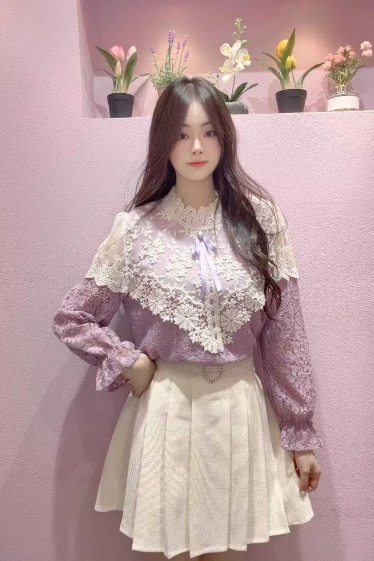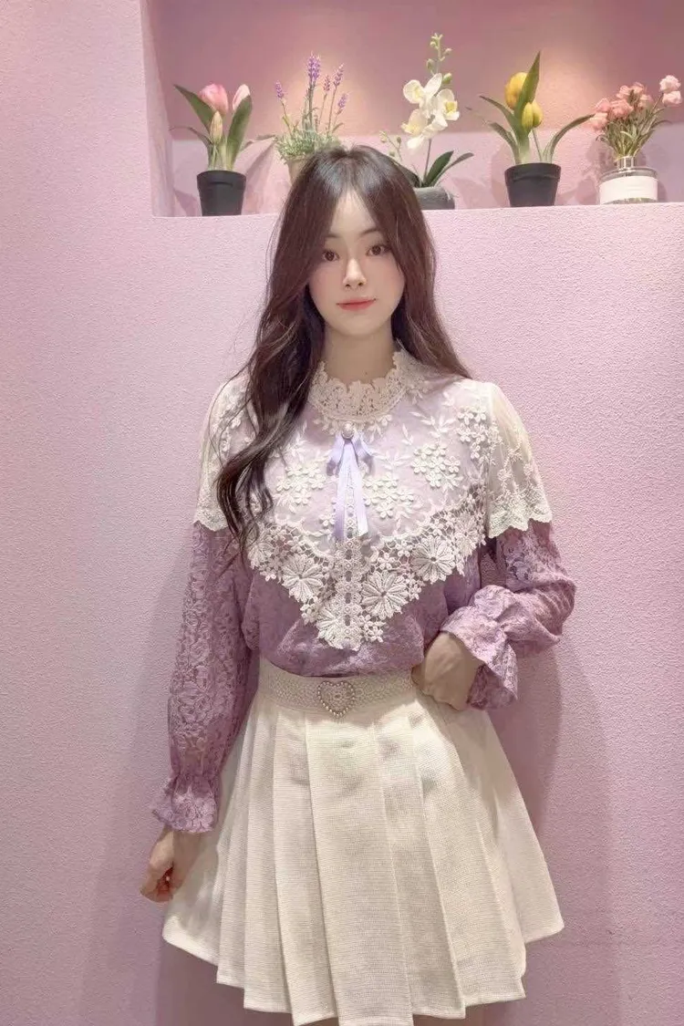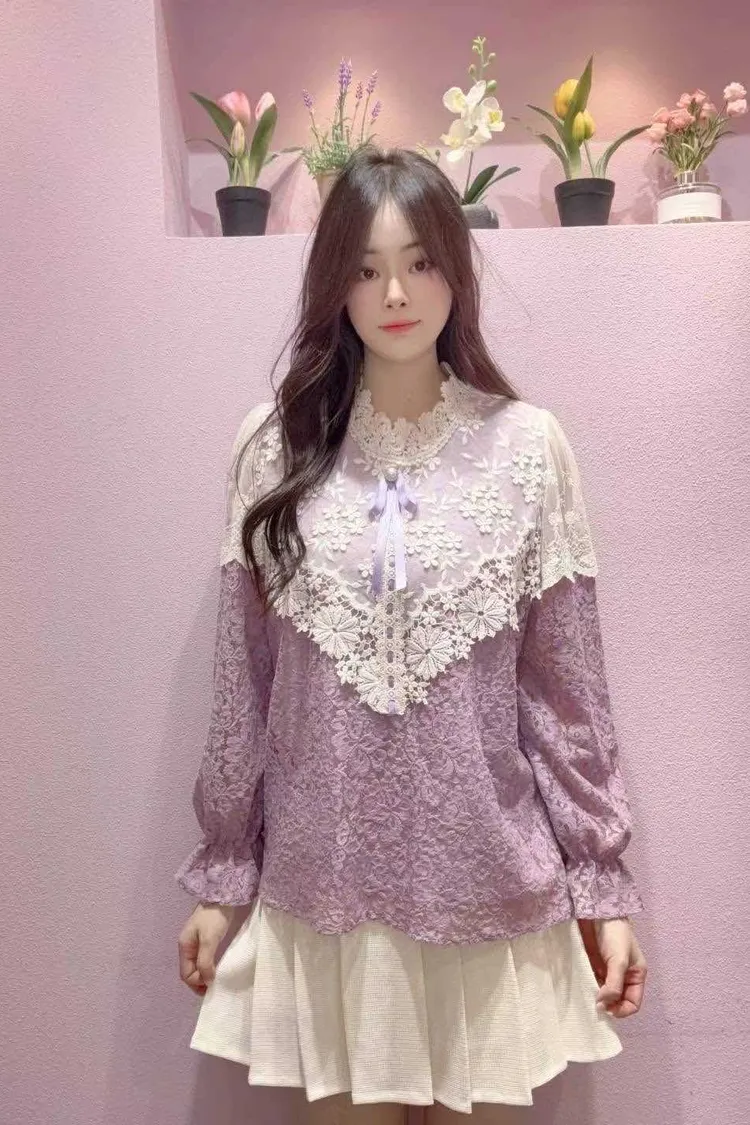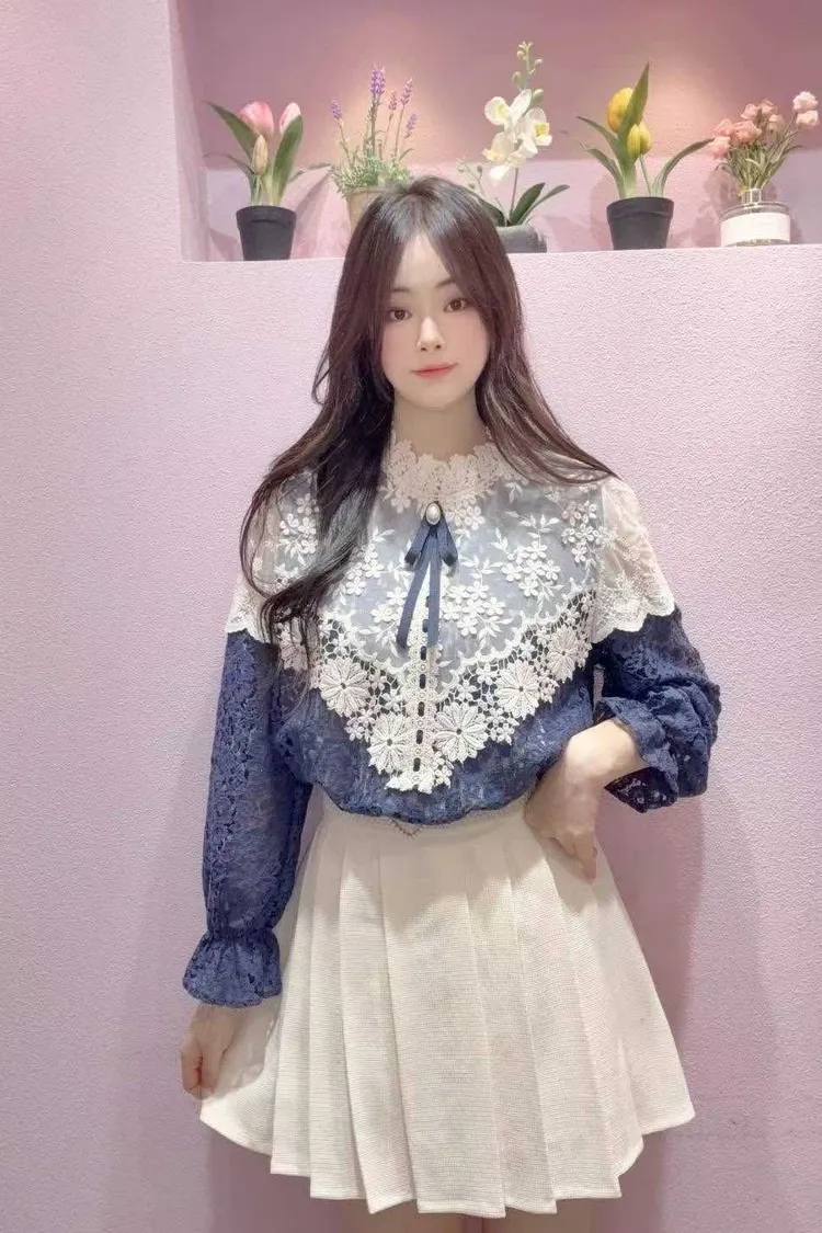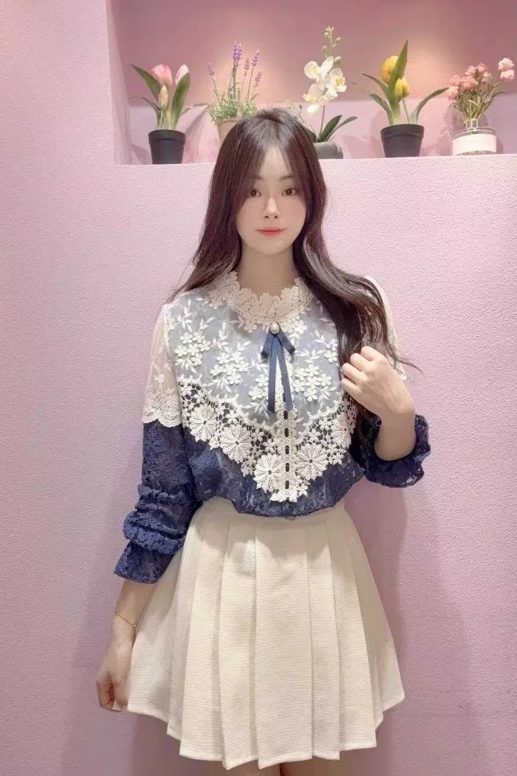 🔥現貨🔥MS048 🇰🇷正韓🌺精緻蝴碟結蕾絲花朵上衣🌺