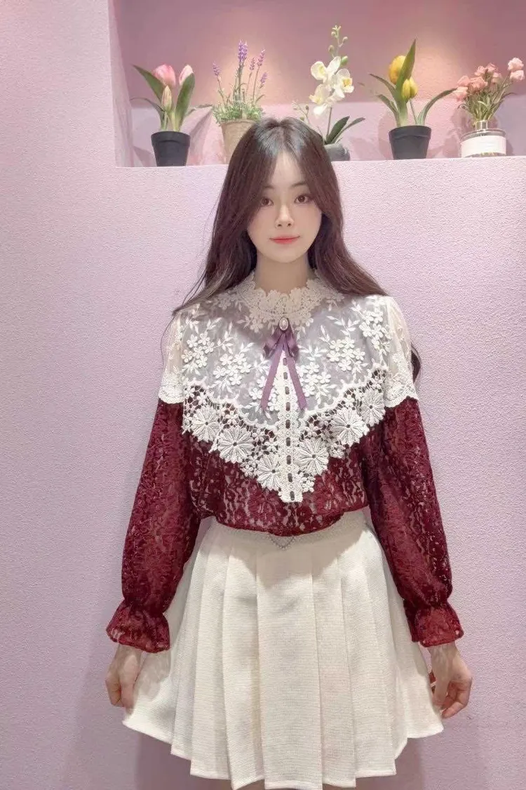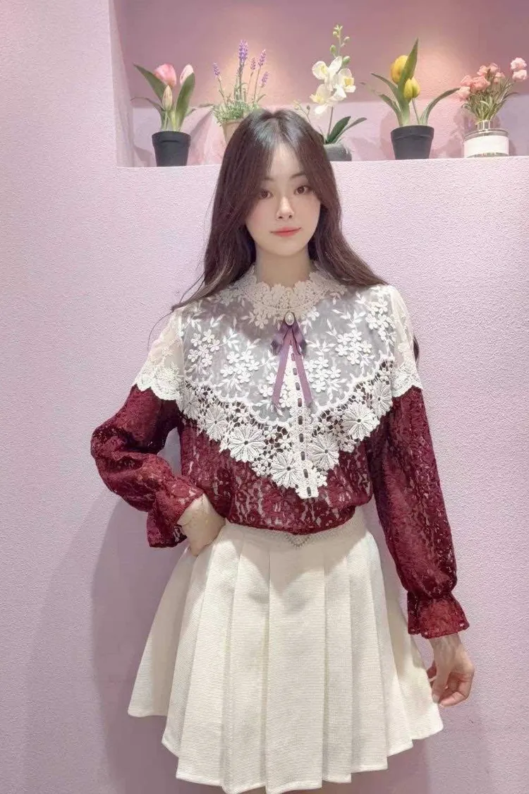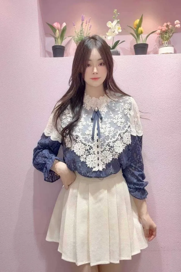 🇰🇷正韓🌺精緻蝴碟結蕾絲花朵上衣🌺