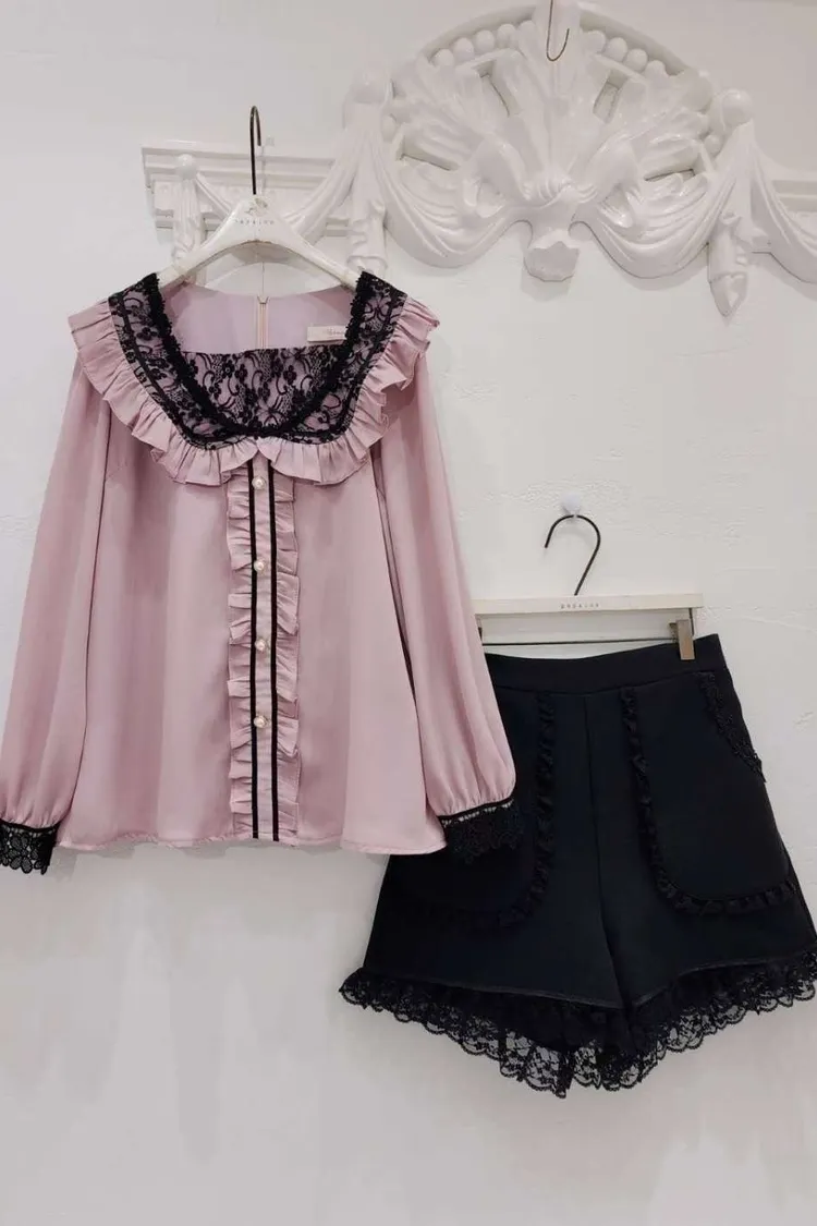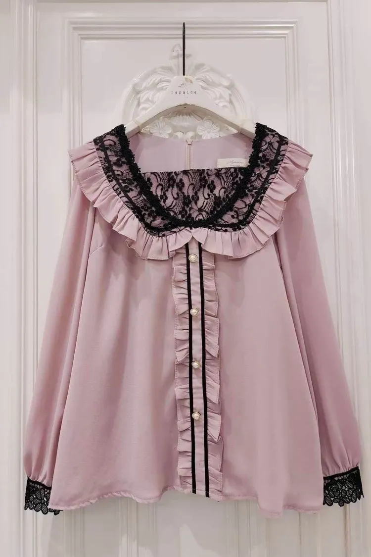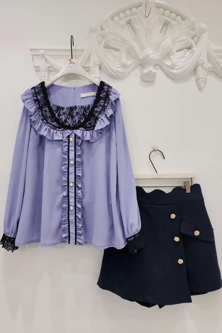 🔥現貨🔥PA039 🇰🇷正韓_PaPa🎀精緻荷葉邊珍珠排釦上衣🎀