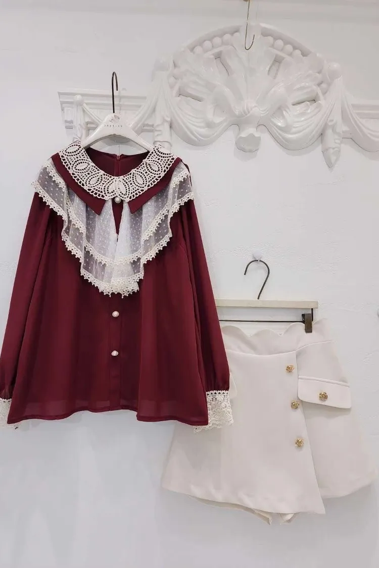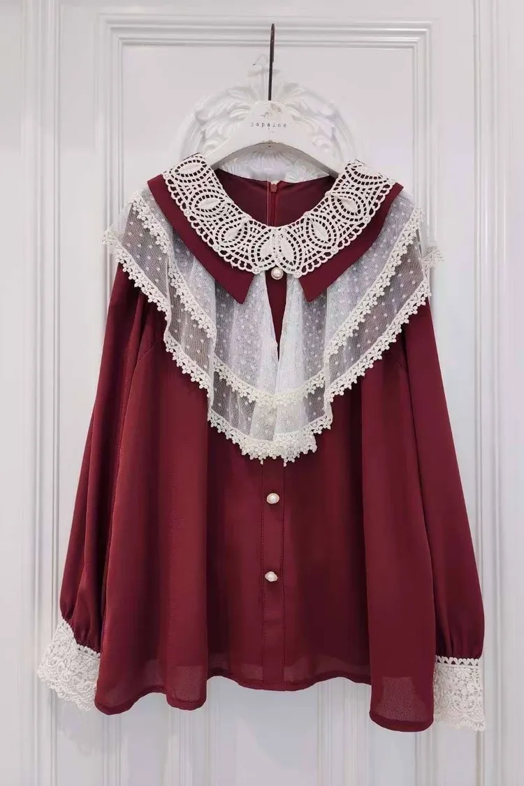 🎀復古宮廷風蕾絲領片上衣🎀