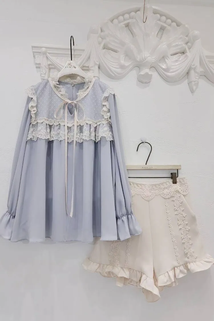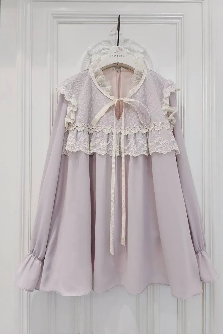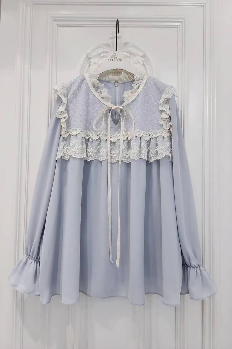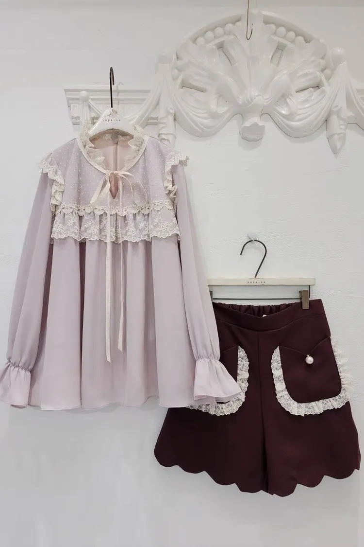 🔥現貨🔥PA042 🇰🇷正韓_PaPa🎀精緻蝴蝶結蕾絲拼接上衣🎀