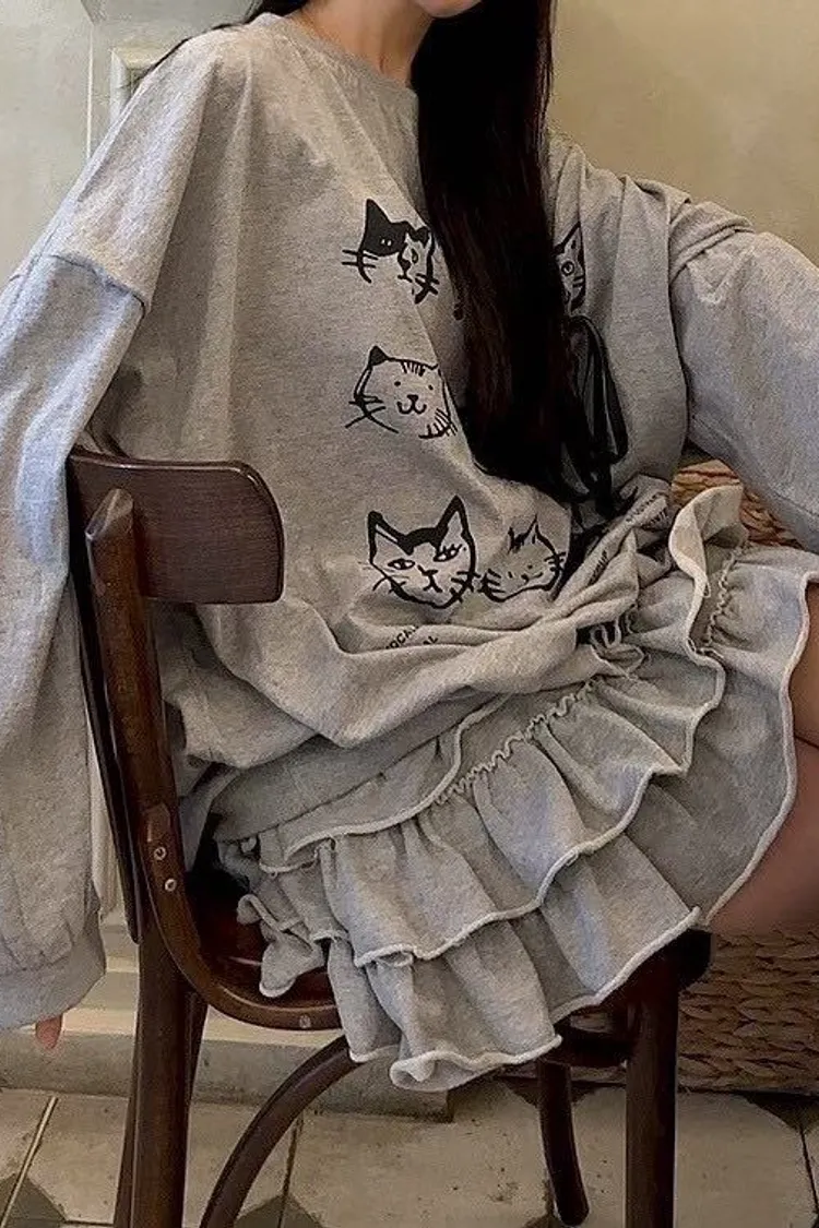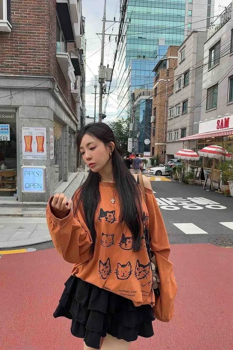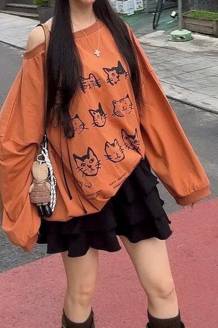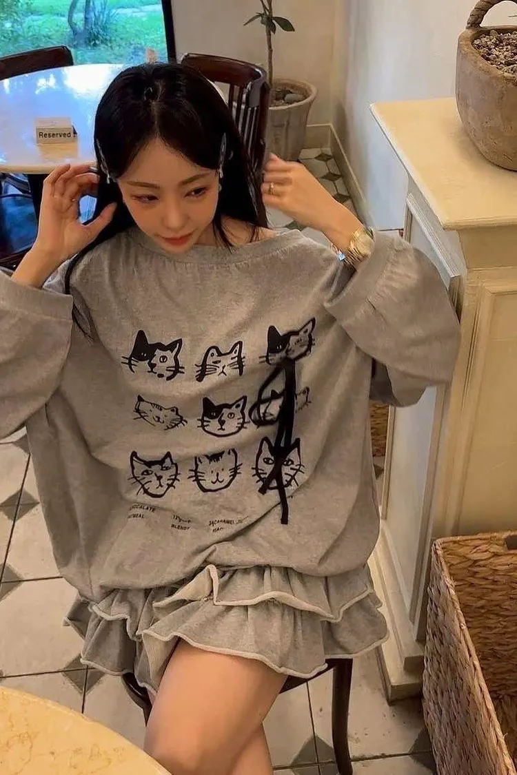 PAL014 🇰🇷正韓_精品棟💜韓系慵懶貓咪隨性休閒寬鬆T💜