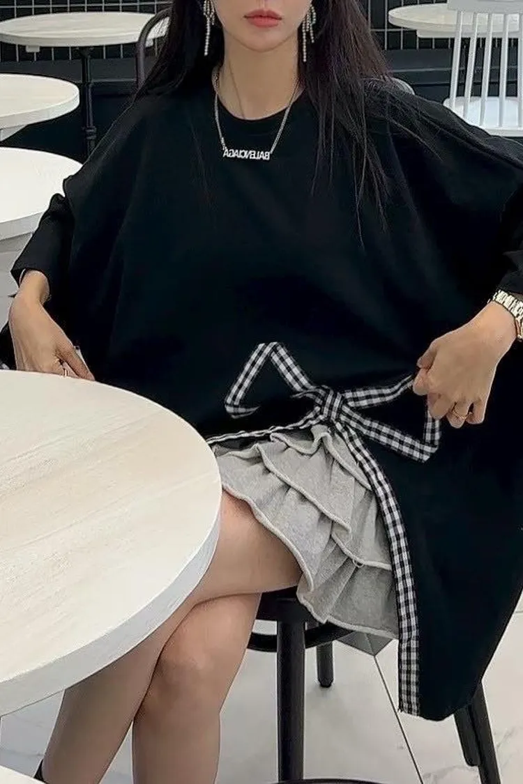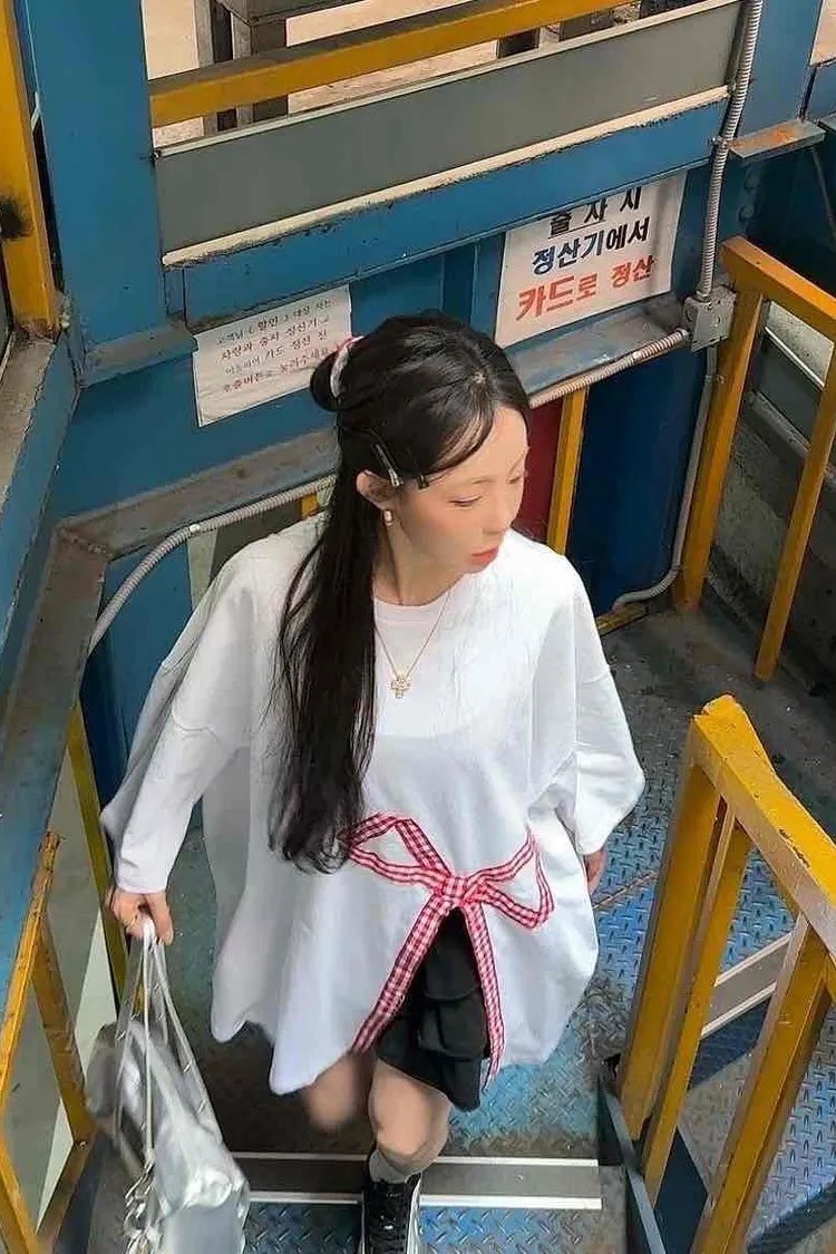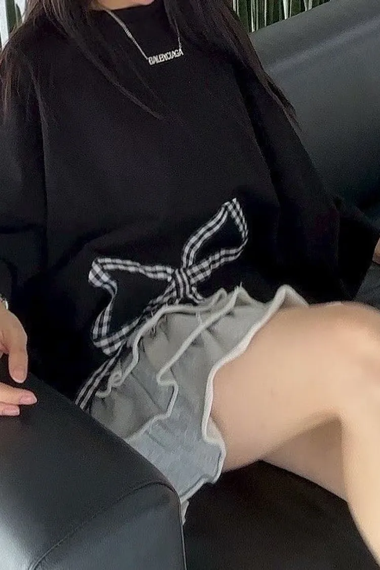 PALO15 🇰🇷正韓_精品棟💜甜美韓系側邊格紋蝴蝶結休閒上衣💜