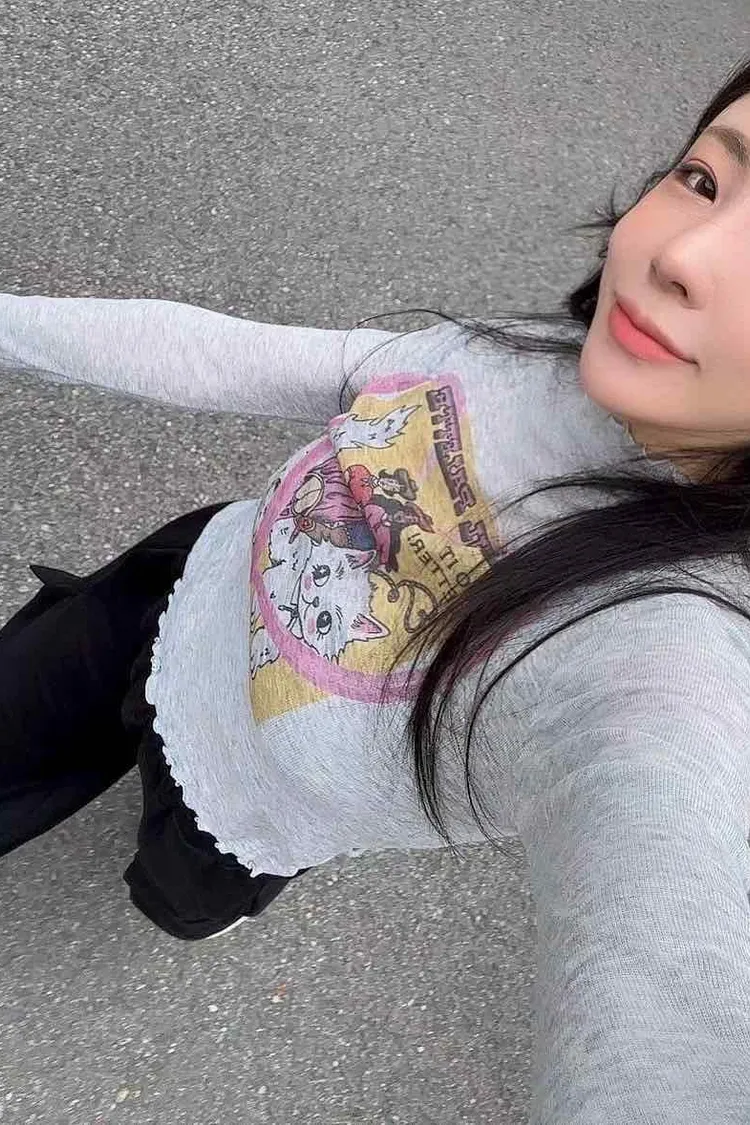 💜甜酷潮流美式插畫休閒上衣