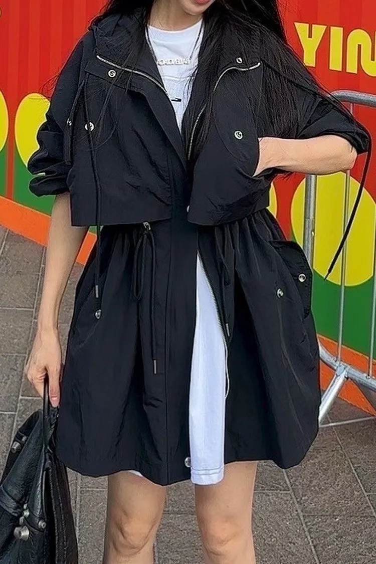 PAL023 🇰🇷正韓_精品楝率性韓妞工裝抽繩風衣外套