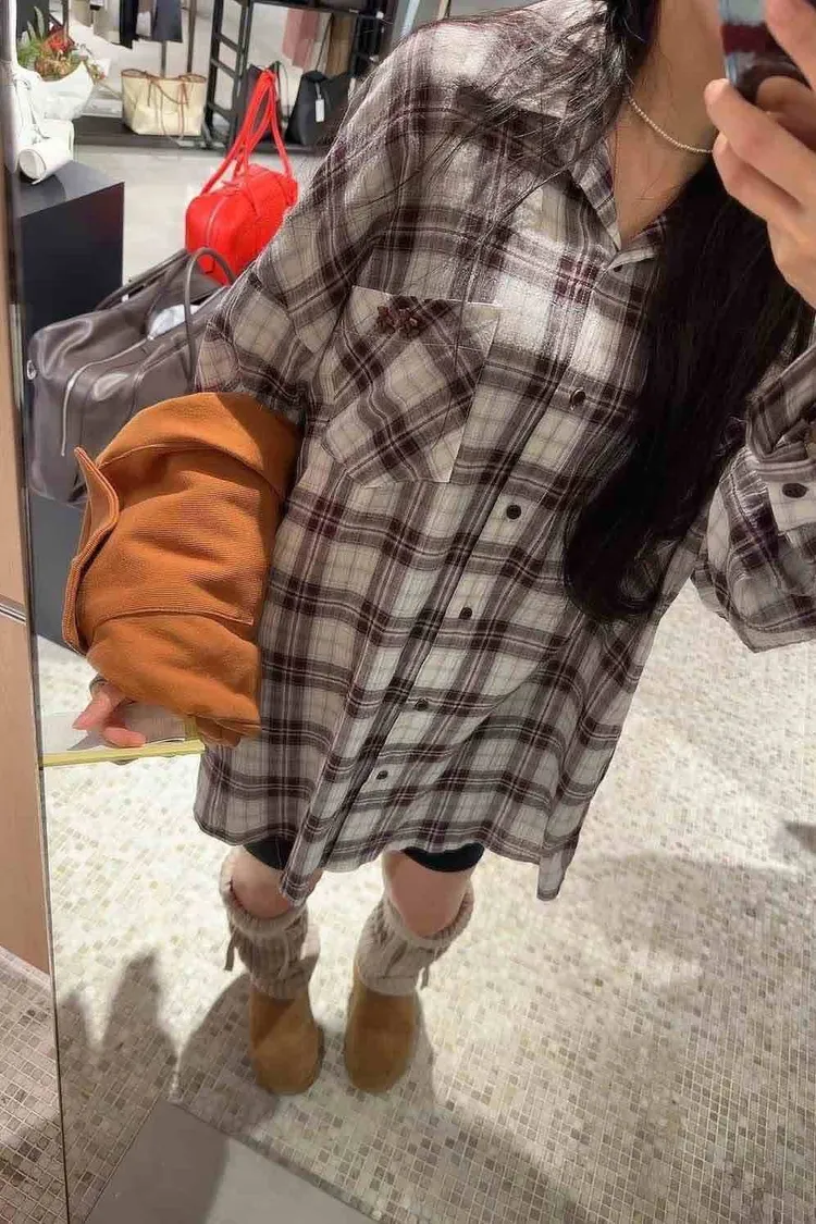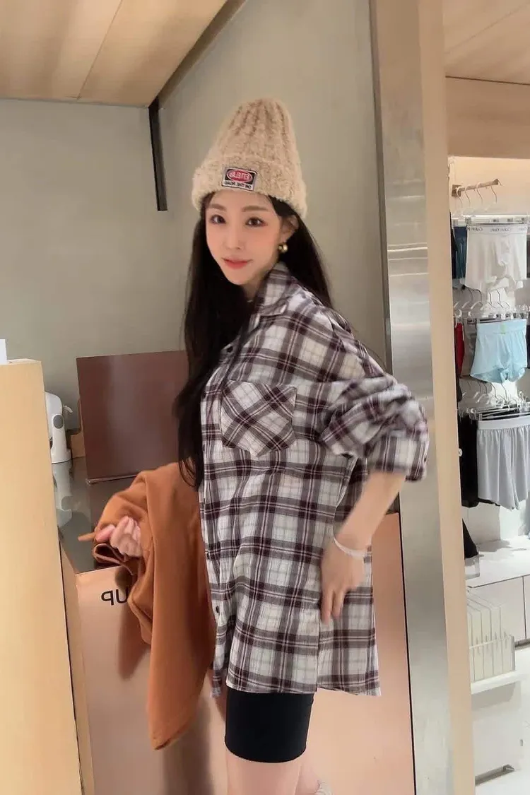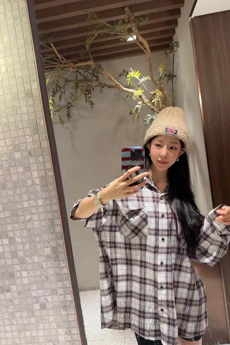 🇰🇷正韓_精品棟 🩶隨性慵懶風 寬鬆百搭柔軟格紋襯衫🩶 ✔️100% 舒適度:柔軟輕薄,單穿或疊穿都完美。 ✔️ 100% 隨性感:長度剛好,下半身失蹤、內搭短褲/Legging,就是最潮的隨性Look!✔️ 經典兩色:淺色溫柔、深色個性。