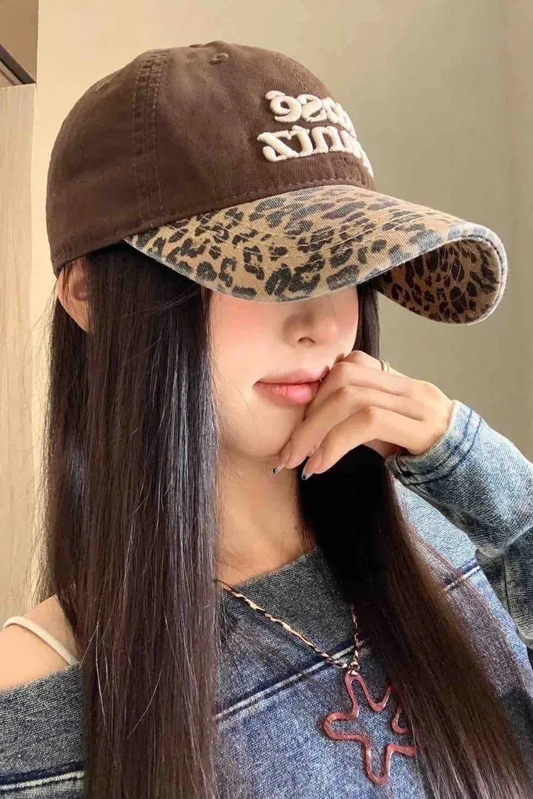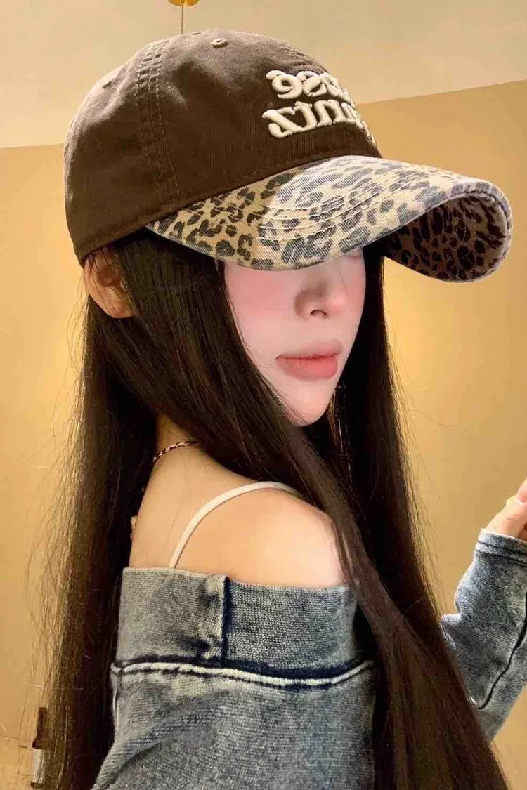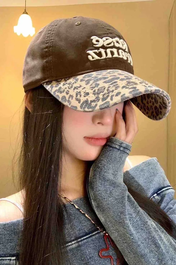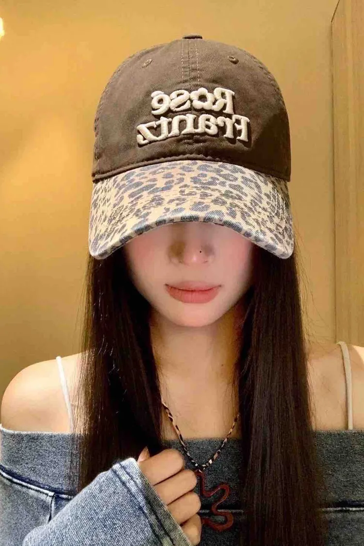 🇰🇷正韓🤎Rose Frantz刺繡字母豹紋拼接棒球帽🤎 🤎低調的棕色系豹紋拼接在帽簷,一秒點燃穿搭的野性魅力,走在路上回頭率 200%!🤎恰到好處的帽深與寬簷設計,完美修飾頭型和臉型,素顏出門也能瞬間顯臉小!