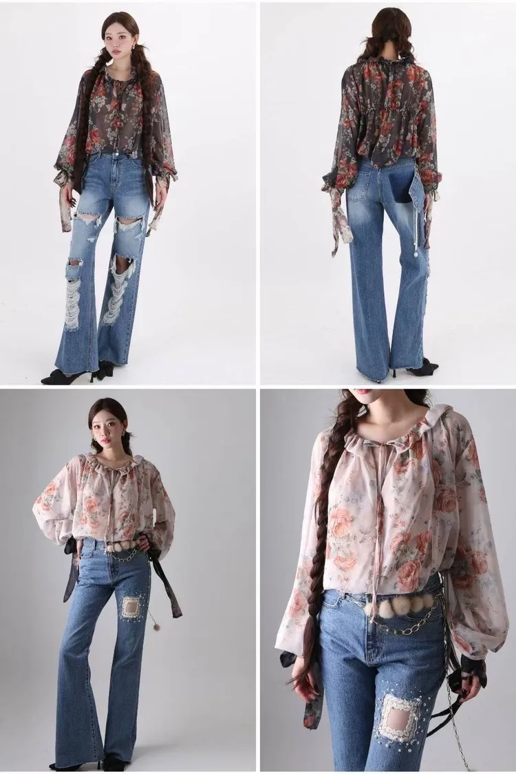 YA004 🇰🇷正韓💖甜美碎花雪紡上衣💖